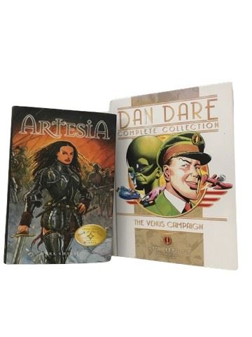 Two hard cover graphic novels. 1. Artesia by Mark Smylie- a graphic novel hardcover book submitted to the production offices of the Resident Evil franchise by a management company with hopes to make the movie. Labeled Foreward Magazine’s “Book of the Year” award winner. 2006. 2. Dan Dare Complete Collection, The Venus Campaign graphic novel hardcover book by Frank Hampson.