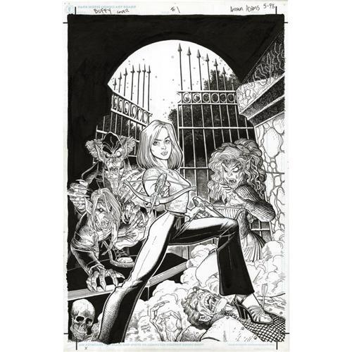 <B>Arthur Adams - Buffy the Vampire Slayer #1 Cover Original Art (Dark Horse, 1998).</B></I> Buffy Summers is not like other girls. She's been chosen to save the world from the vampire plague, and balancing saving the world with high school is no easy task. With his action-packed pages, his richly designed characters and almost superhuman attention to detail, Art Adams' illustrations evoke a mood of pure fun and adventure. During the past two decades, Art Adams' fan appeal has exploded around the world -- making him one of comics' most popular illustrators. The art has an image area of 10.5" x 15.5," and is in Excellent condition. <BR><BR><b>Shipping:</b> Flat Material, Small (<a target="_blank" href="http://www.heritageauctions.com/common/shipping.php">view shipping information</a>)