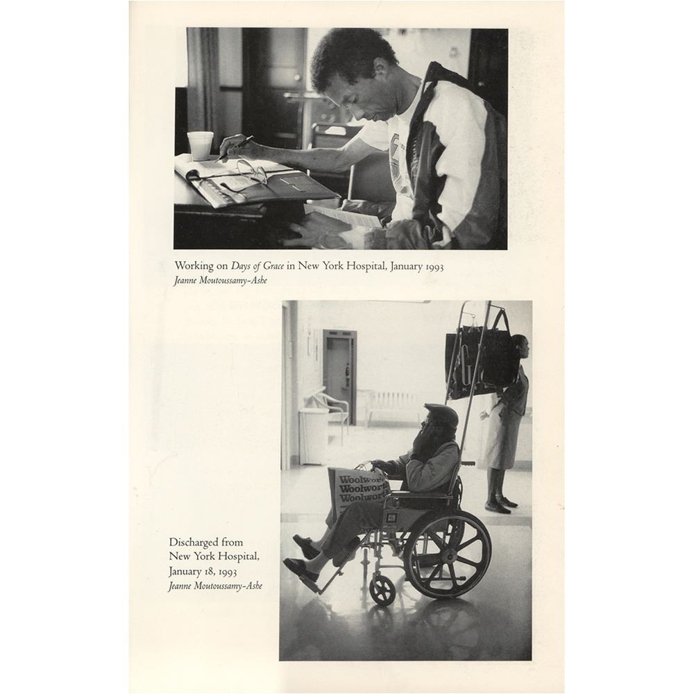A first edition of Days of Grace, A Memoir by Arthur Ashe and Arnold Rampersad, published by Alfred A. Knopf in 1993, hardcover with dust jacket, which contains images of Ashe wearing the Comstock winter jacket and his Davis Cup uniform, both of which are offered within this archive. Separation to inner binding and various library stamps and labels.