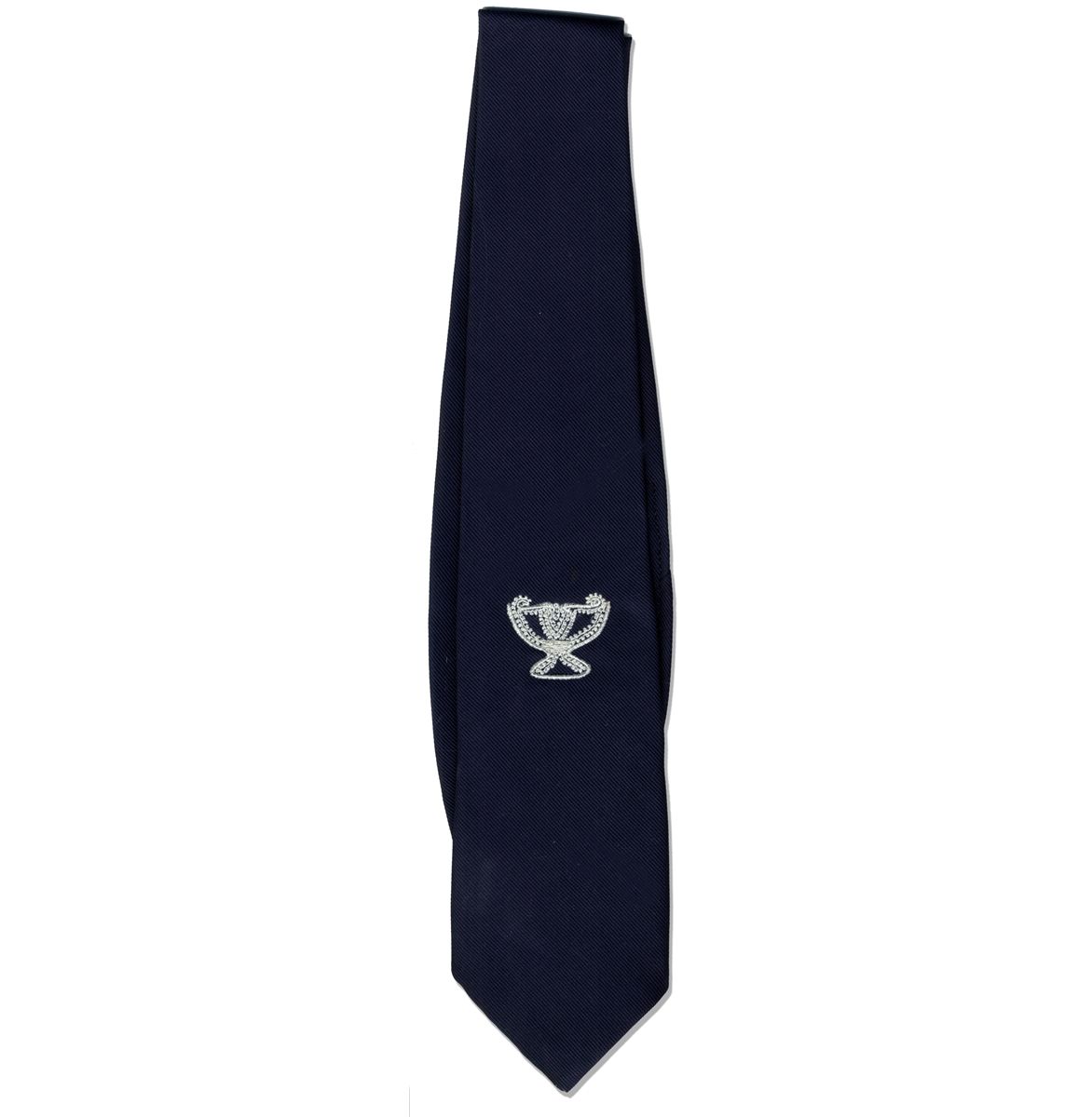 Davis Cup tie custom made for Arthur Ashe from his personal collection. Navy blue men's necktie features the Davis Cup logo embroidered in glimmering silver on the front. The designer label of '60's custom tie house William M. Frazin is sewn into the back alongside a label indicating the tie was ''Custom made for / Arthur Ashe''. Measures 54'' in total length and 3'' across at its widest. Near fine. With an LOA from Arthur Ashe's widow.