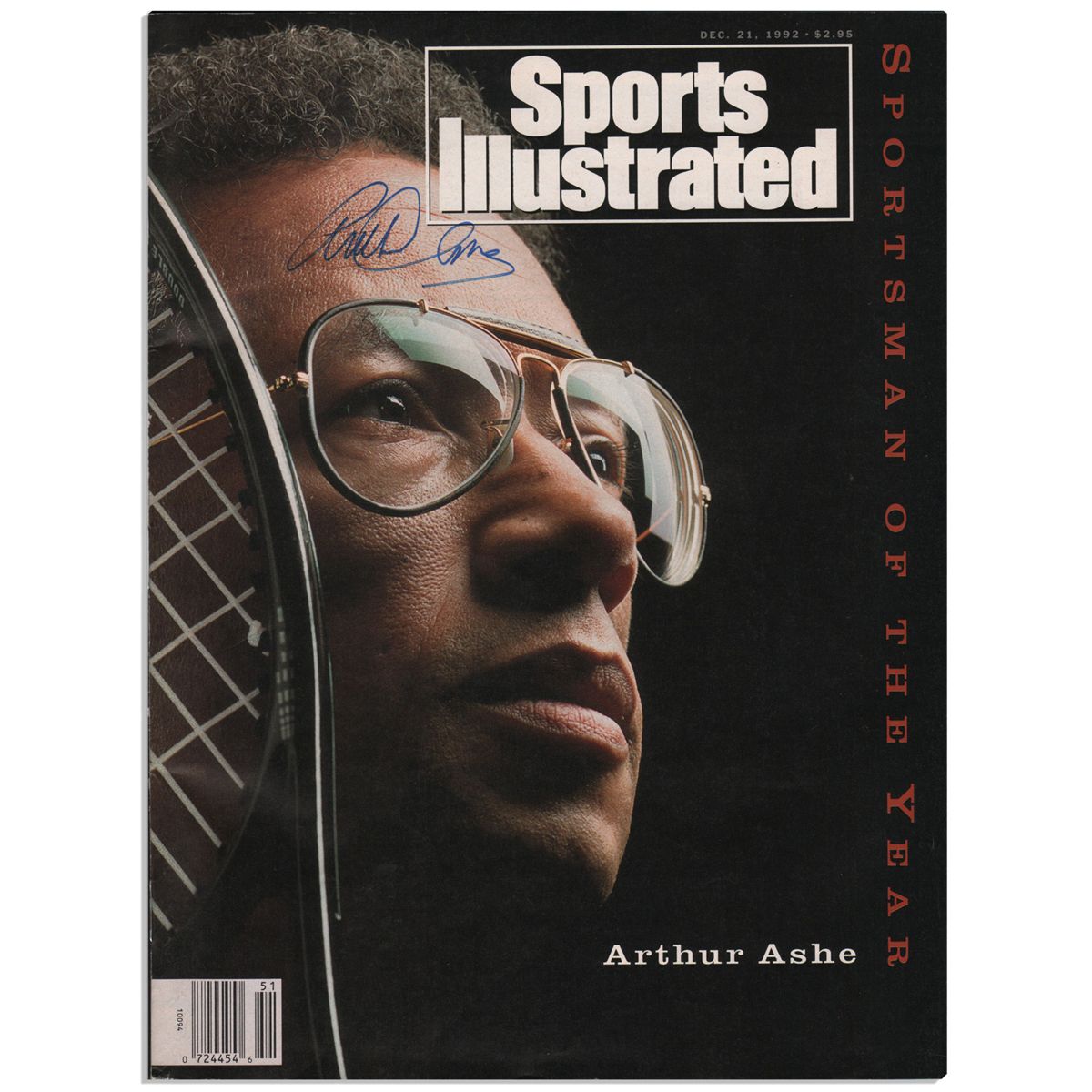 ''Sports Illustrated'' magazine signed by Arthur Ashe as the cover story, ''Sportsman of the Year''. The front cover is signed ''Arthur Ashe'' in black felt tip. Issue is dated 21 December 1992. Following a legendary tennis career and large-scale humanitarian efforts Ashe died a little over a month after this periodical hit newsstands. Magazine runs 100pp. and measures 8'' x 10.75''. Near fine. With an LOA from Arthur Ashe's widow.