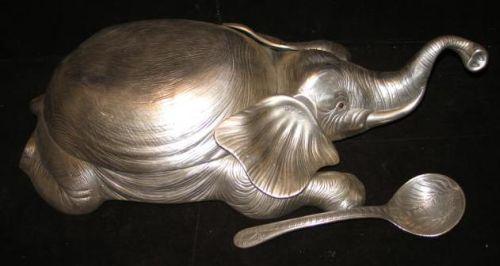 Arthur Court Cast Metal Design Elephant Server with serving spoon. 26 x 14 x 6.