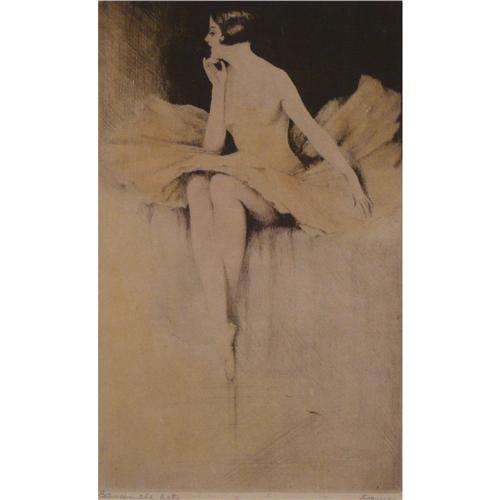 Arthur Davies, Color Dry Point, "Between the Acts", 11 1/2" x 7", Signed lower right. Surface abrasion, paper loss to left margin.