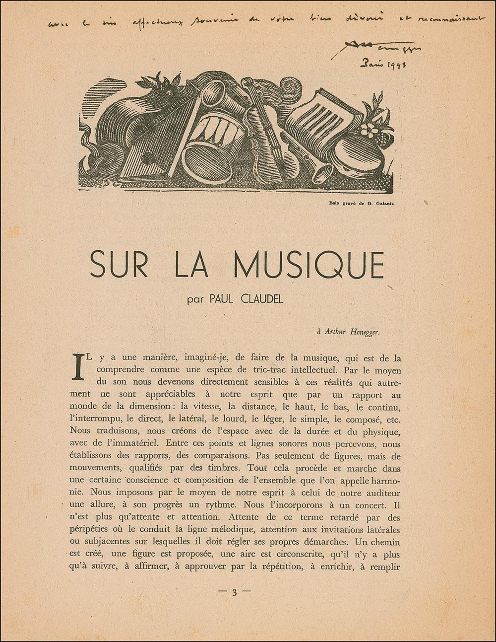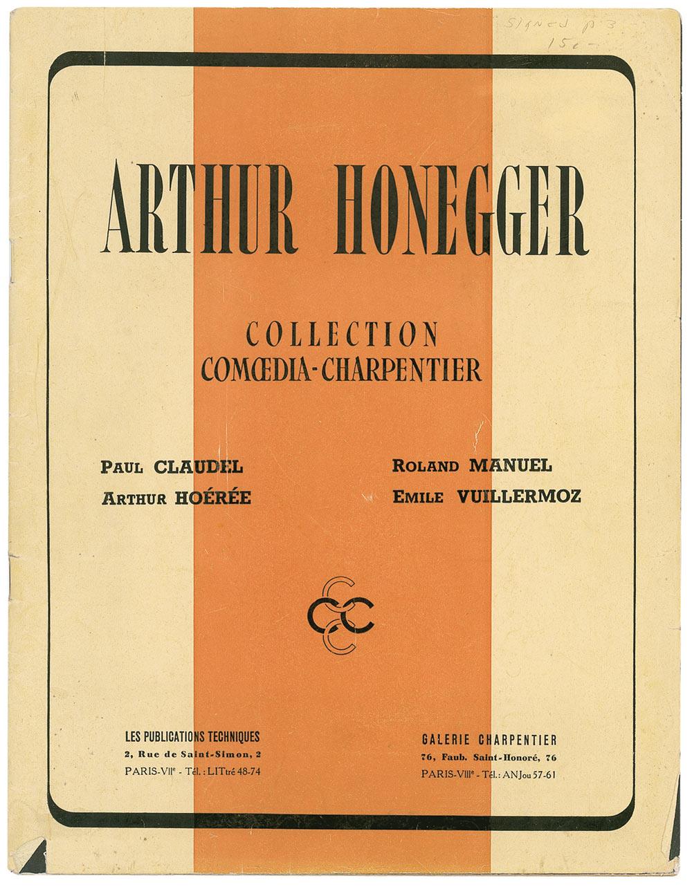 Eminent Swiss composer (1892–1955) best known for the evocative orchestral work Pacific 231. Arthur Honegger Collection Comoedia-Charpentier, Special Issue booklet, dated 1943, 9.5 x 12.5, 34 pages. Signed at the top of page three by Honegger, adding a brief sentiment as well, and dated Paris, 1943. In very good condition, with toning to signed page and other inside pages, scattered creasing, soiling, and small edge tears to covers, and mild overall handling wear.