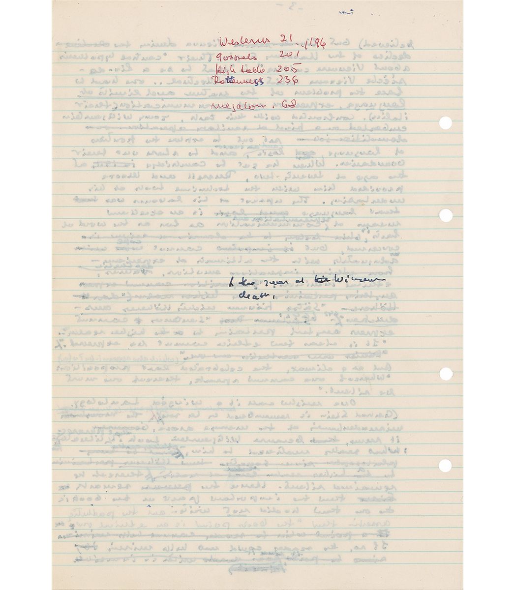 Jewish-Hungarian author (1905–1983) best known for the anti-Stalinist novel Darkness at Noon. Exceptional handwritten manuscript for an article introduced by a TLS from Koestler to his publisher Robert Calmann-Levy, signed “Koestler,” one page, February 13, 1974, in part: “Enclosed a recent manuscript for your collection. It is a review of a book on Wittgenstein, published by the Observer and included in ‘The Heel of Achilles,’ where you will find all the details.” The manuscript is Koestler’s draft entitled “Wittgensteinomania,” unsigned, five pages, 8.5 x 13, reviewing Wittgenstein's Vienna by Allan Janik and Stephen Toulmin. In part: “The 'Tractatus' became one of the most influential philosophical works of our century, the source of an esoteric cult, the dark oracle from which such diverse schools as Logical Positivism, the Vienna Circle and the Linguistic Philosophers at Oxford drew their inspiration. But unavoidably—as naive non-philosophers would expect—their interpretation of Wittgenstein's message was based on what he had written, and not on that second part which he had not written. And as far as the written text goes, the message could be summed up in a simple slogan: 'metaphysi[ci]ans shut your trap.'” Heavily hand-edited and revised by Koestler throughout. The article was published in the Observer on June 3, 1973. In fine condition. Accompanied by the original mailing envelope.