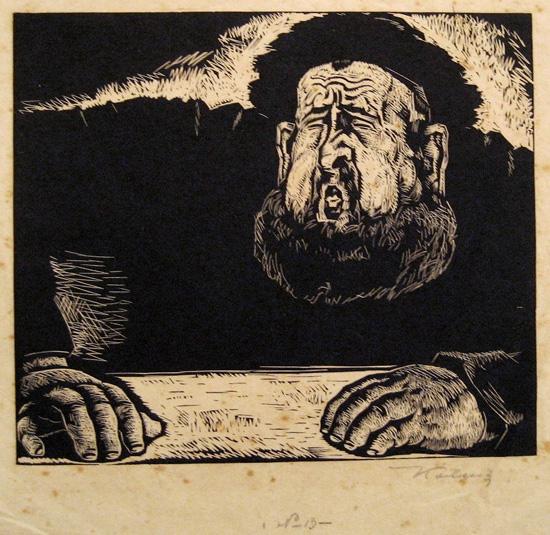 Arthur Kolnik, Ecole de Paris, 1890 - 1972, Le gros Hassid de "A table du Rabbi", de A. Lewitzki, Woodcut, 18x21cm, Signed., , Kolnik exhibition, Tel Aviv Museum of Art, Tel Aviv, December 1968, front page., , ,