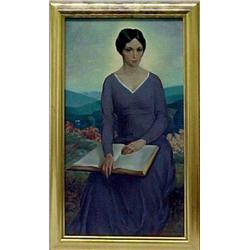 Arthur Meltzer, oil on canvas "Woman with Book" (Phyllis Meltzer), signed Arthur Melter (L.R.), framed, image measures 22" x 12"