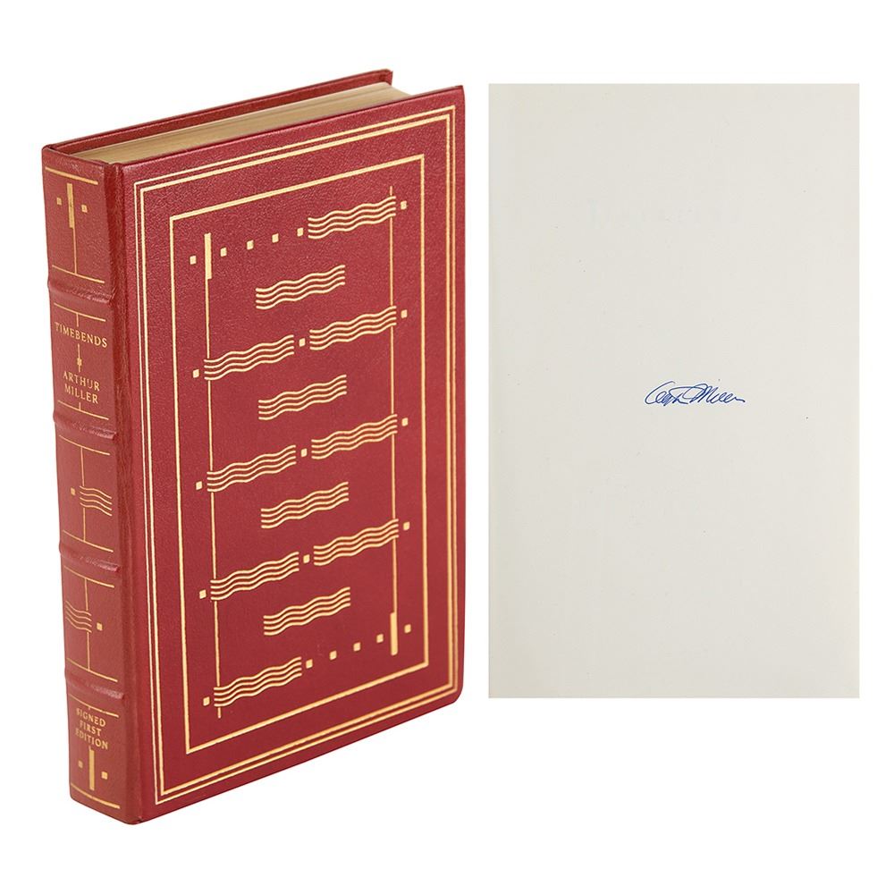 Signed book: Timebends: A Life. Limited first edition. Franklin Center, Pennsylvania: Franklin Library, 1987. Leatherbound hardcover, 6.5 x 9.5, 614 pages. Signed in blue ink on an opening page by Arthur Miller. In very fine condition.