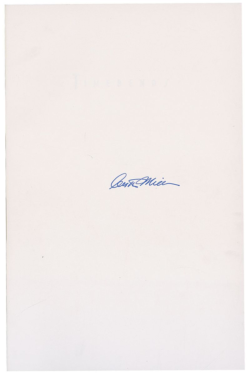 Signed book: Timebends: A Life. Limited first edition. Philadelphia: Franklin Library, 1987. Hardcover, 6.5 x 9.5, 614 pages. Signed on the second free end page in blue ink. In very fine condition.