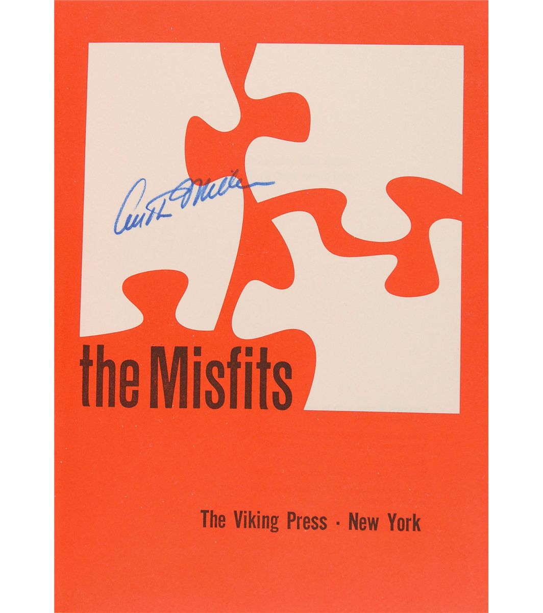Signed book: The Misfits. First edition. NY: Viking Press, 1961. Hardcover with dust jacket, 6.75 x 9.25, 132 pages. Signed on the title page in blue felt tip. Autographic condition: very fine. Book condition: VG/VG-.