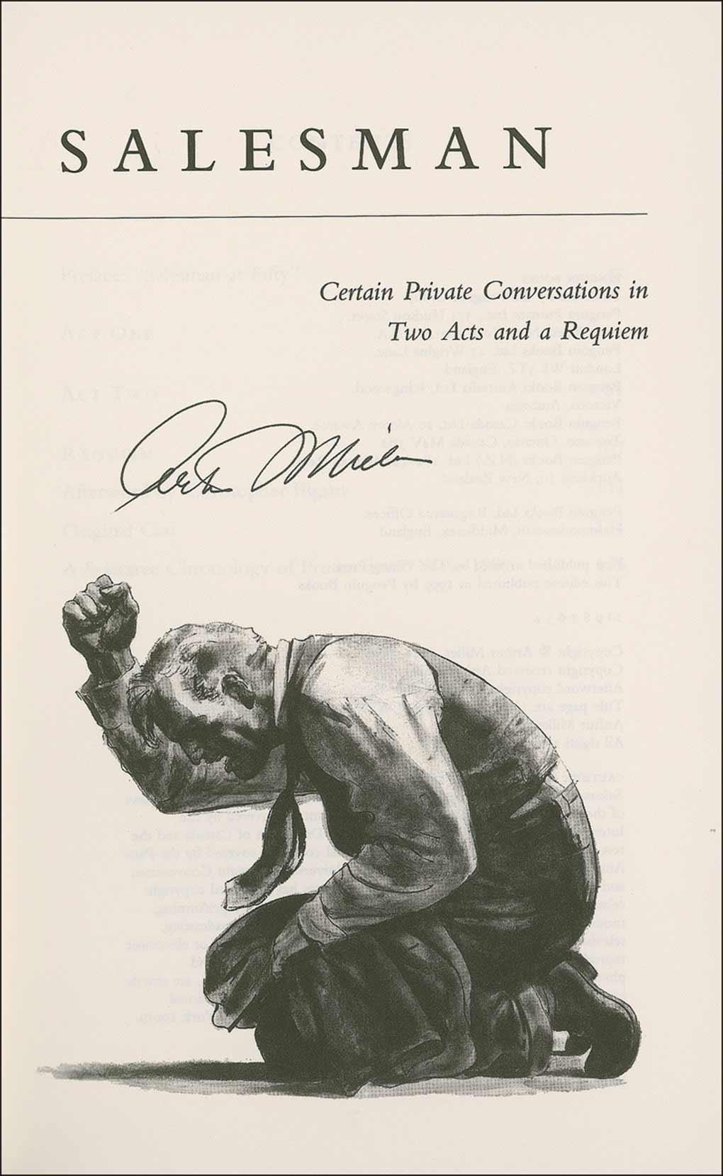 Signed book: Death of a Salesman. 50th anniversary edition. NY: Penguin Books, 1999. Hardcover with dustjacket, 6 x 8.5, 142 pages. Signed on the title page in black ink. In fine condition, with a promotional label affixed to front cover, and a few light creases to dustjacket.