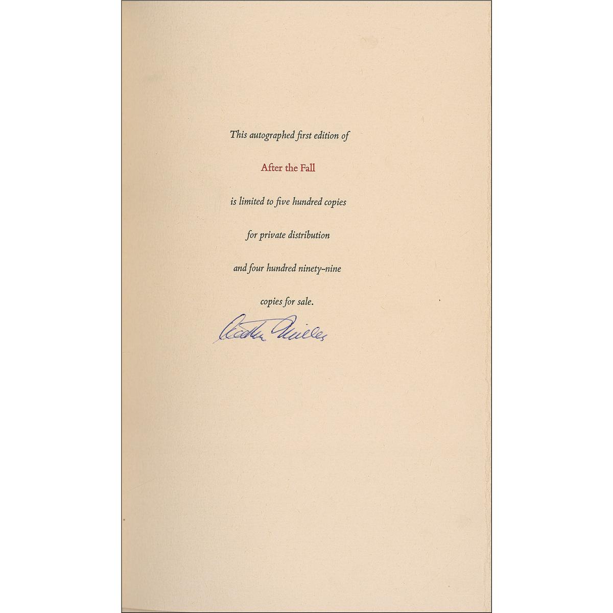 Signed book: After the Fall. Limited autographed first edition of 500 copies for private distribution, first printing. NY: Viking Press, 1964. Hardcover, 6.25 x 9.75, 129 pages. Signed on the limitations page in blue ballpoint. In fine condition.