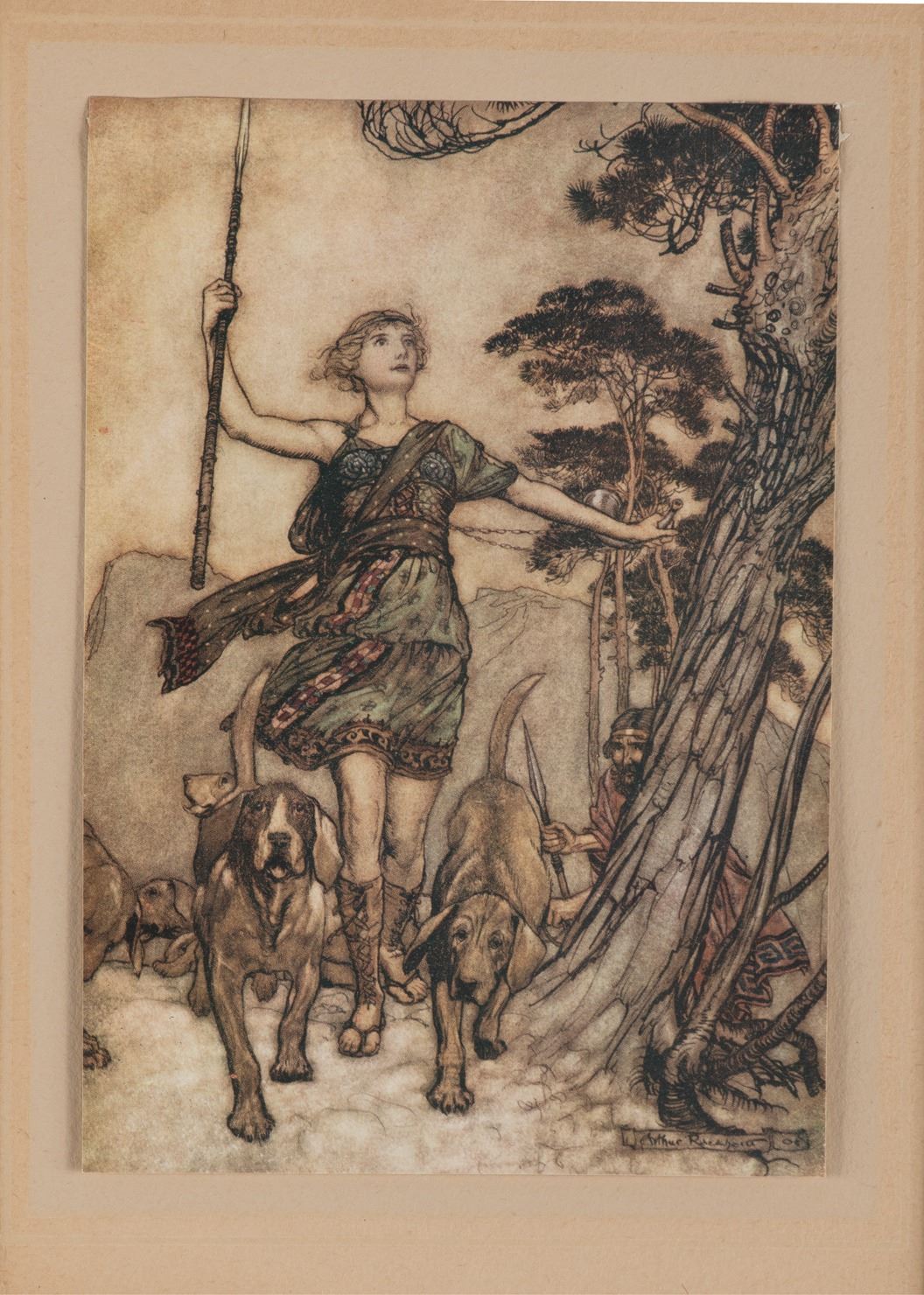208. Arthur Rackham (5) engravings. Collection of (5) vintage color engraving prints ranging in size from 5 x 6.75 in. to 5.25 x 7.75 in., mounted to backing board, matted, and ready for framing. In very good condition. $200 - $300