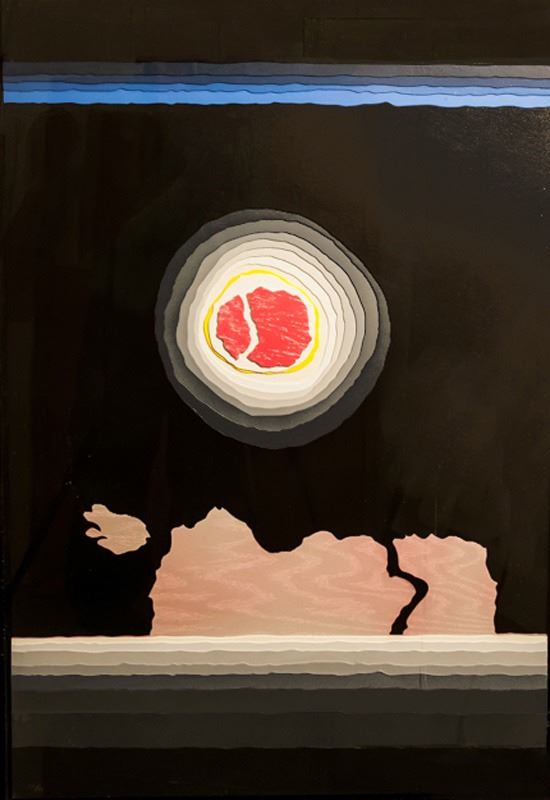 Medium: Painted Paper Collage, signed