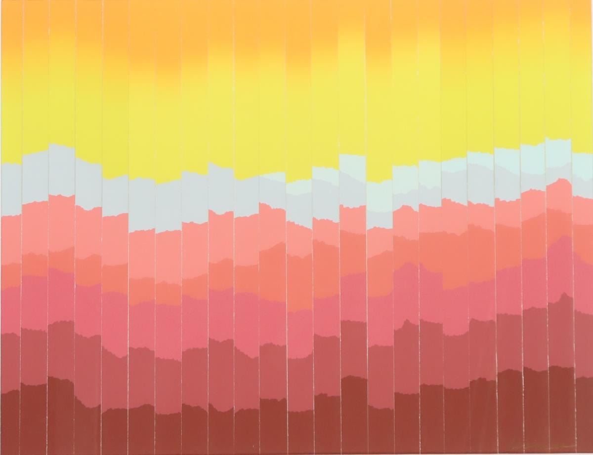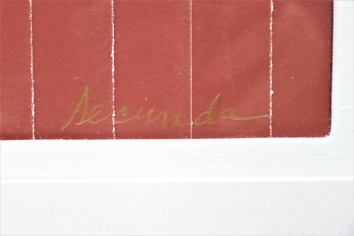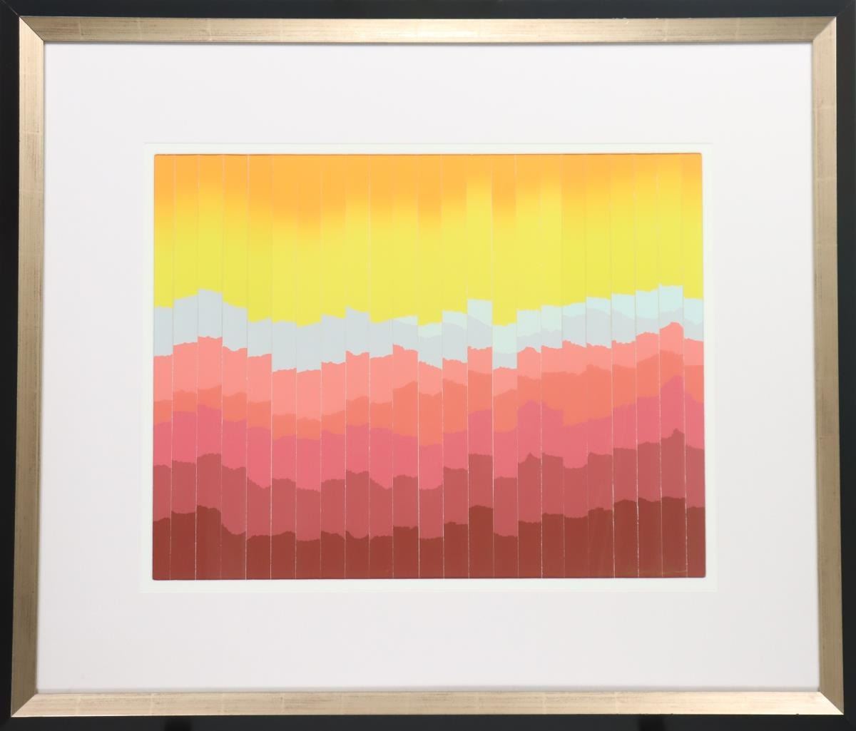"Rain on a Watery Window", constructed of cut paper, signed lower right: Secunda. Arthur Secunda is known for printmaking, collage, mixed media abstract painting.
