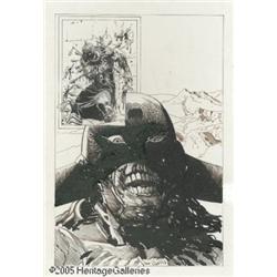<B>Arthur Suydam - Death Dealer #4 Splash Page Original Art (Verotik, 1998).</B></I> Writer Glenn Danzig is joined in this issue by one of the acknowledged masters of epic fantasy/science-fiction art, artist Arthur Suydam, for the fourth book in the Death Dealer mythos. As the Death Dealer returns to his keep, awaiting him is a horde of war-hungary barbarians. Few fantasy characters have gripped the imaginations of readers like the Frank Frazetta's Death Dealer has, and few artists have realized his raw power and fury as brilliantly as the best selling Suydam. This piece measures 10" x 15" and is in Excellent condition.