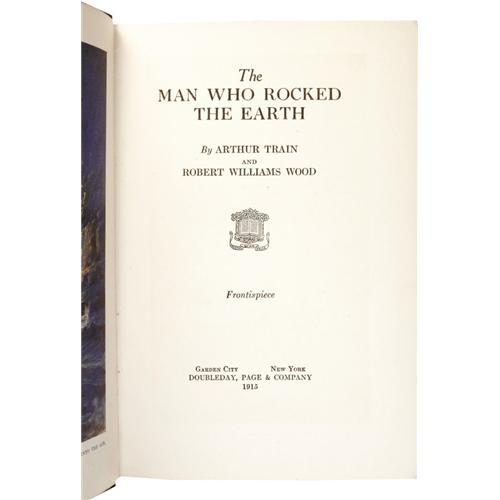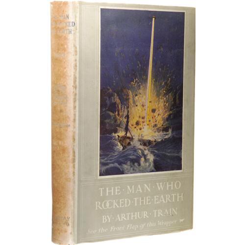 <B>Arthur Train:<I> The Man Who Rocked Earth.</B></I></B></I> (New York: Doubleday, Page & Company, 1915), first edition, 228 pages, color frontis and cover illustrated by Walter Greene, pictorial endpapers, blue pictorial boards with gilt titles, 12mo (5.25" x 7.75"), about fine in an unclipped jacket that has moderate toning on the spine, else near fine. <I>From the Ventura Collection.</B></I><BR><BR><b>Shipping:</b> Books & Catalogs (<a target="_blank" href="http://www.heritageauctions.com/common/shipping.php">view shipping information</a>)