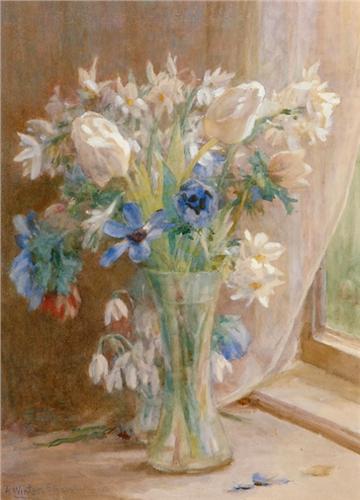 1869 - 1948 British <BR> Still Lives with Flowers <BR> A pair of watercolours <BR> Each signed; titled on reverse <BR> Sight 14.75 x 10.25in., 37.5 x 26cm. <BR>