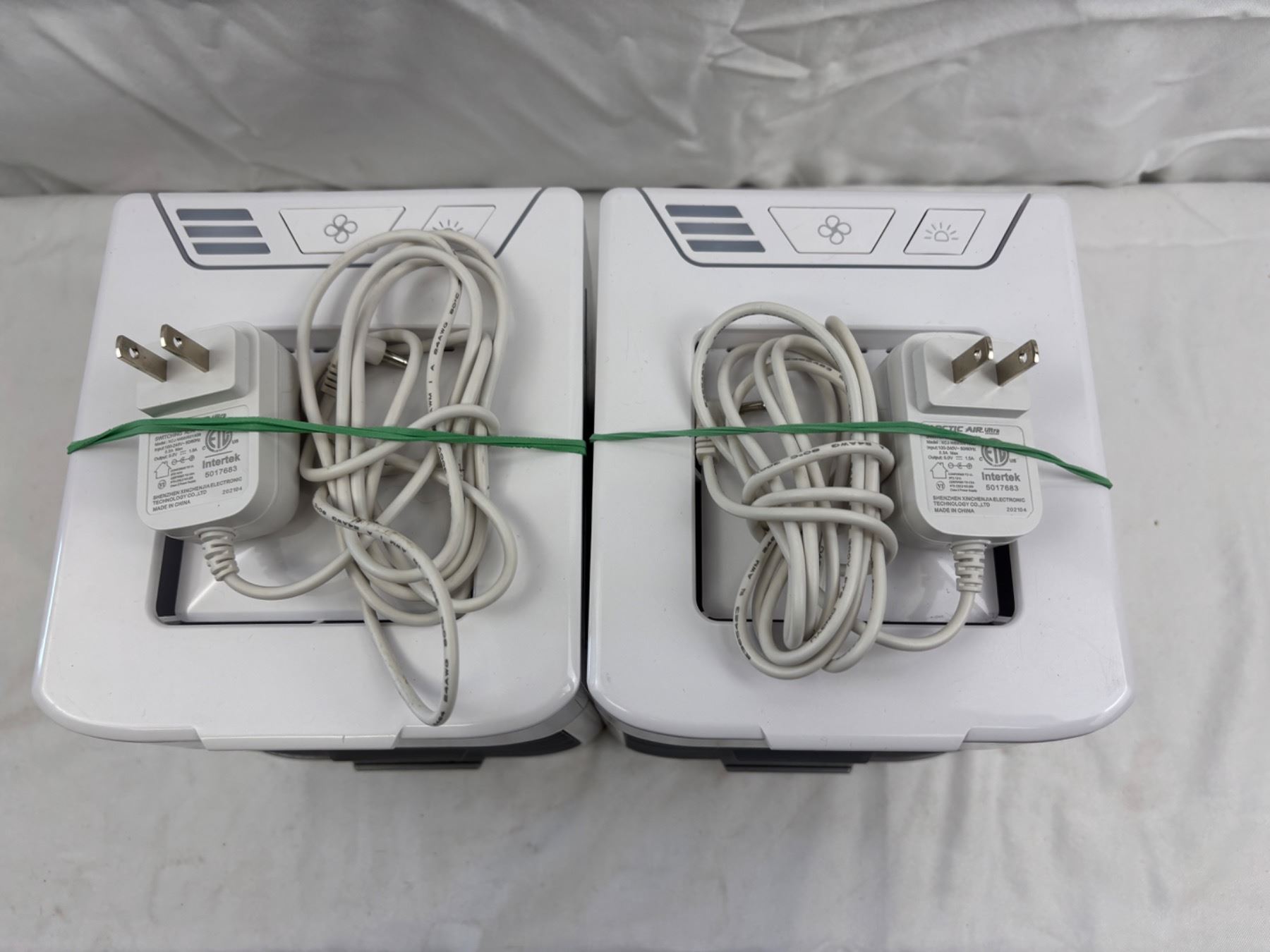 Model NO. TVL2105, both power on, each one is 7"L x 6"W x 6"H