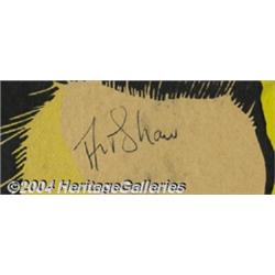<B>Artie Shaw Signed Window Card.</B></I> In 1936, Artie Shaw formed his first band, which was a small ensemble. This was a truly innovative group, but unfortunately, at its Boston debut, it bombed with the public. Shaw immediately broke this band up and in 1937, he formed a conventional big band that became an instant success and scored a huge hit with their recording of "Begin The Beguine." In 1938, Shaw integrated his band by adding Billie Holiday as the vocalist. In 1939, at the height of his popularity, Shaw walked off the stage and quit the business. Throughout the '40s, Artie would start a band and then immediately disband it. During the '50's, Artie Shaw tried his hand at becoming a writer and published several books that brought him moderate success. Artie Shaw's innovative bands, his breaking down of the racial barriers, and his willingness to hire modern jazz musicians have earned Artie Shaw a prominent place in the history of American music. This card memorializes that first failed gig in Boston with Shaw's first band. The significance of this lot is that he signs "Art" not "Artie", and his name is printed on the poster as "Art." He only used that name for his first band, making this card extremely rare and important to any jazz collector. Pinholes at each corner and two small holes at the bottom could be repaired. <I>Accompanied by COA from Jazz & Big Band expert Larry Rafferty.</B></I> <BR><BR><B>Important notice:</B> Heritage usually auctions material at the rate of 200-250 lots per hour. On some occasions eBay Live bid software or the Internet may not be able to keep up with the pace of the auction. We recommend placing a realistic absentee bid now as insurance to avoid disappointment. Occasionally the auctioneer may eliminate or reject an eBay Live bid, and the auctioneer may also reopen a lot after the close of the eBay live bidding (usually because we missed an audience bid), and may reject your bid even if it shows you as the winning bidder. By bidding via eBay Live, you agree that Heritage may award the lot to another bidder at its sole discretion under the circumstances described above or any other reasonable circumstances. Since eBay bids are not shown to us until we open the lot on the floor, we treat those bids just like floor bids. In most cases the floor responds before the eBay bid is presented to us, due to Internet lag time, so for consistency we have made it a policy that floor bids are always considered first over tie eBay live bids. Also please note that all Heritage lots purchased through eBay Live carry a 24.5% Buyer's Premium. Please make sure you read the Terms and Conditions before you bid.