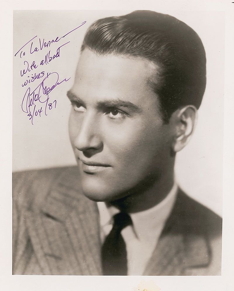Glossy 8 x 9.75 head-and-shoulders photo of Shaw, signed and inscribed in black felt tip, “To LaVerne—With all best wishes, Artie Shaw, 3/04/87.” In fine condition, with slight soiling to the lower border.