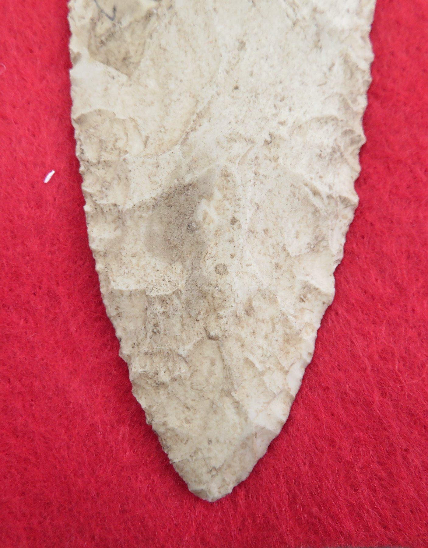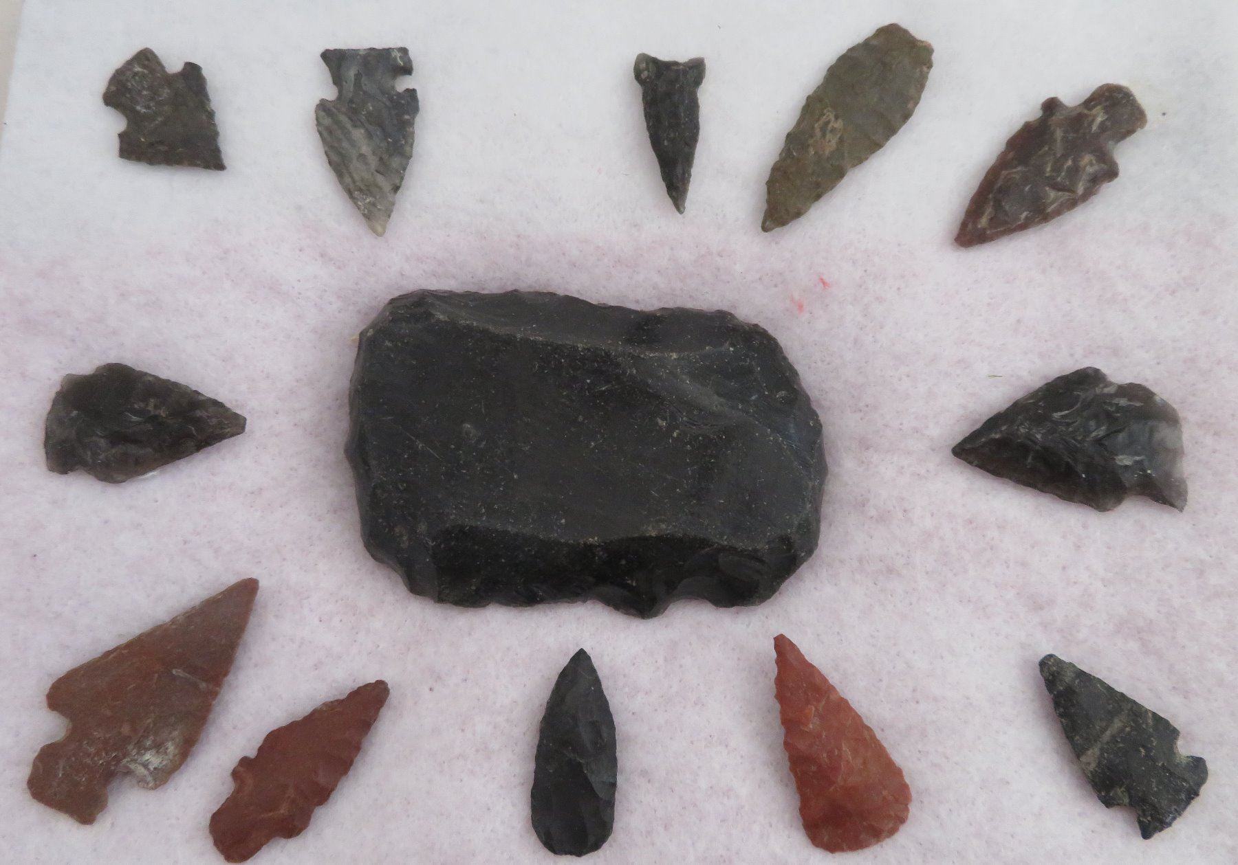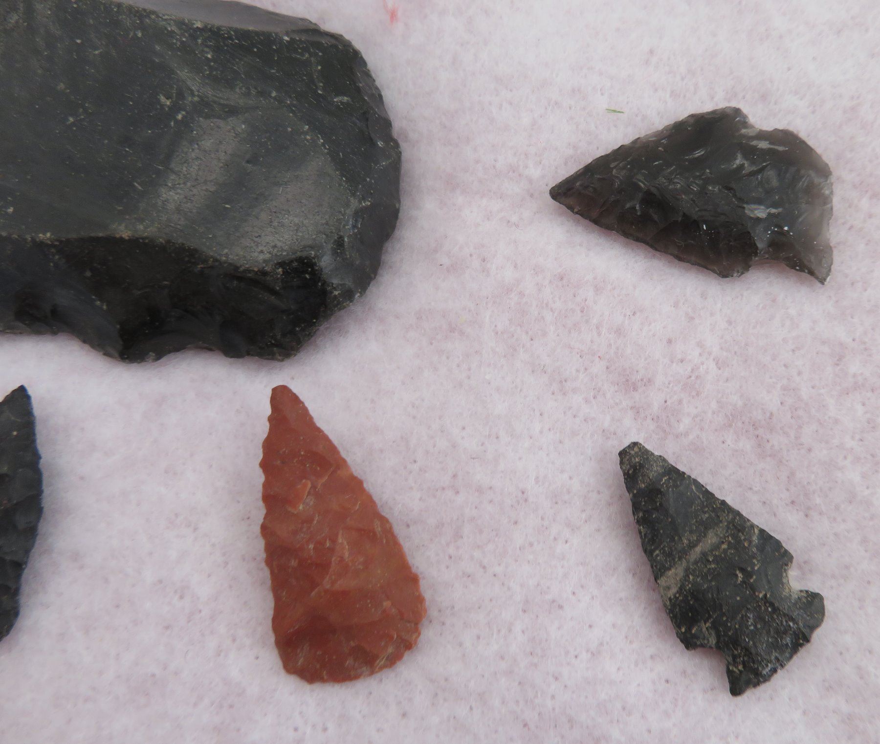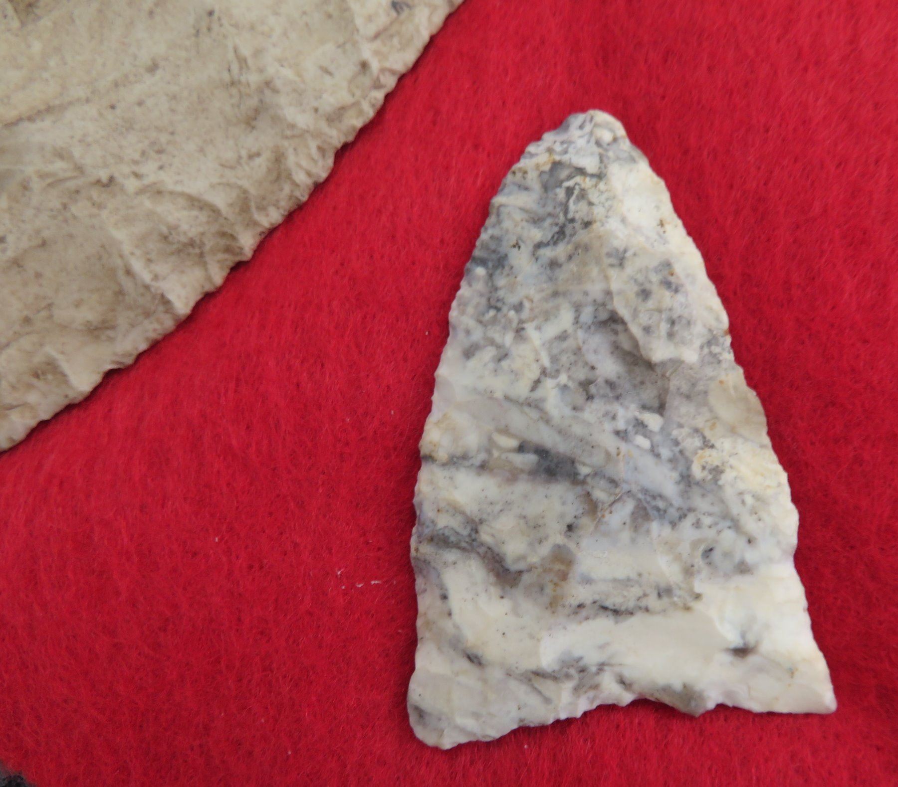 Artifact Frame, archaic to paleo periods. Made of chert and obsidian, the clovis measures 4 7/8". Clovis data: Schyler County, Illinois. Ex-Byron Anderson. Frame not included. Condition: As found, see images. Shipping: $30.00 w/insurance and signature, due to value.