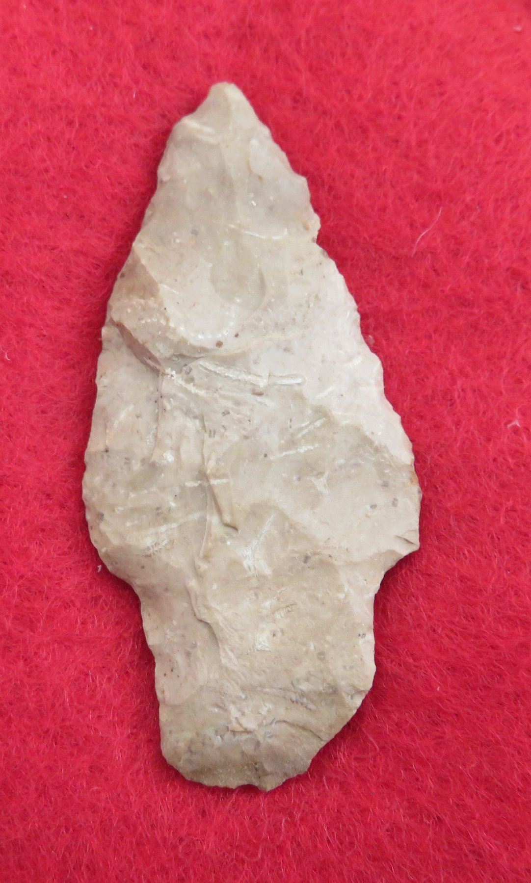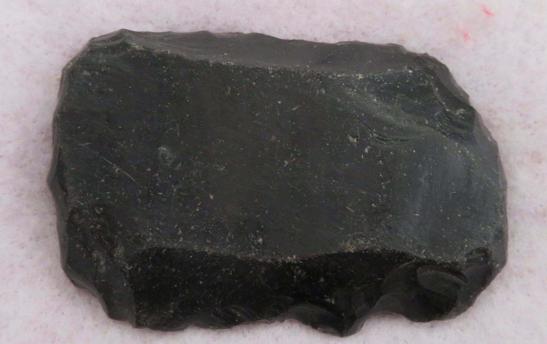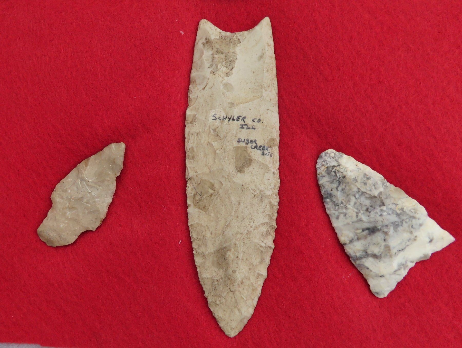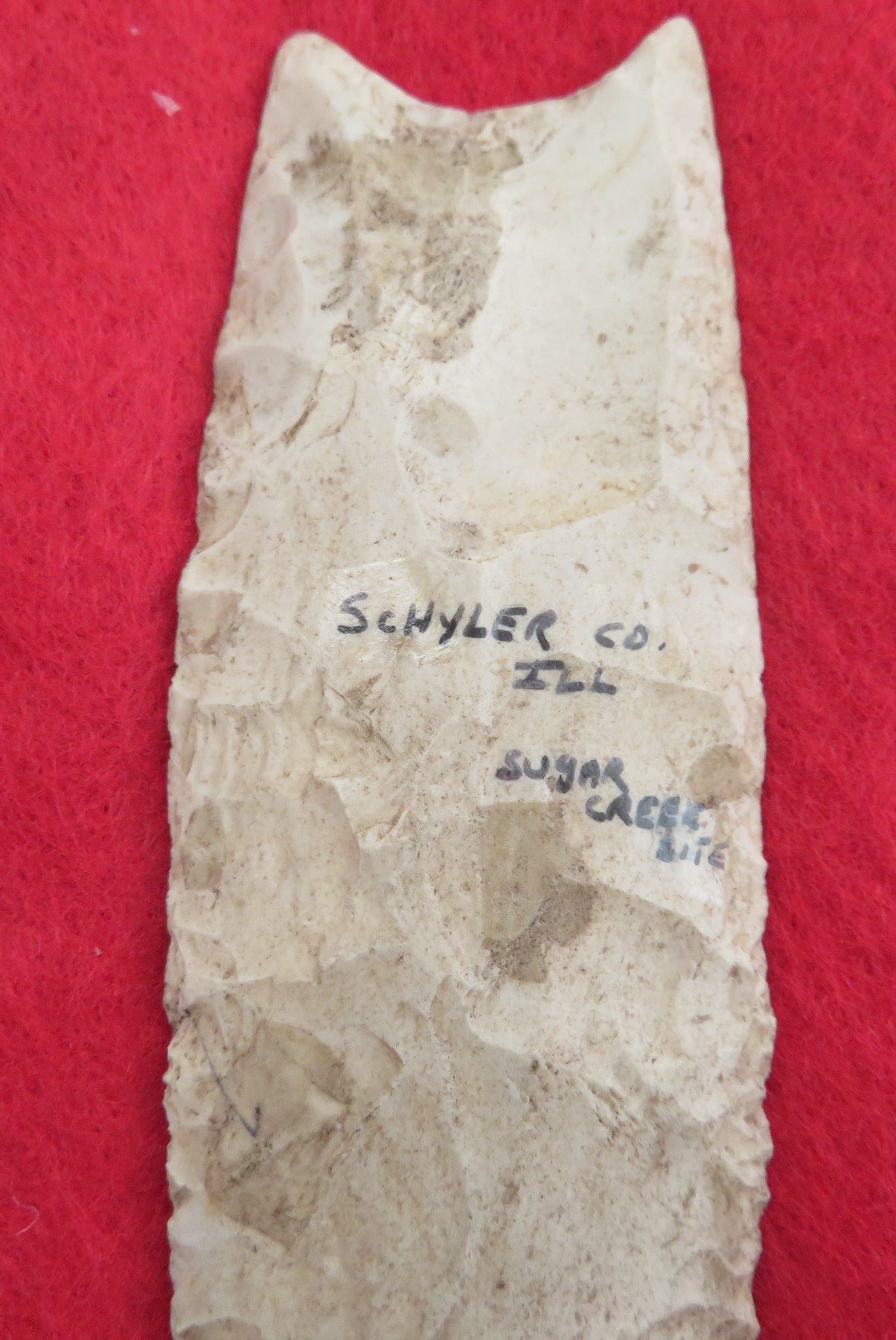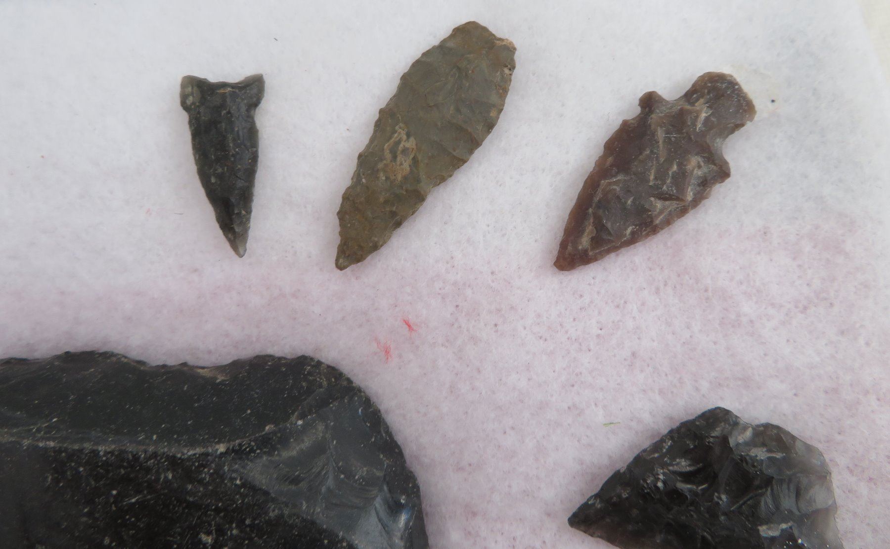 Artifact Frame, archaic to paleo periods. Made of chert and obsidian, the clovis measures 4 7/8". Clovis data: Schyler County, Illinois. Ex-Byron Anderson. Frame not included. Condition: As found, see images. Shipping: $30.00 w/insurance and signature, due to value.