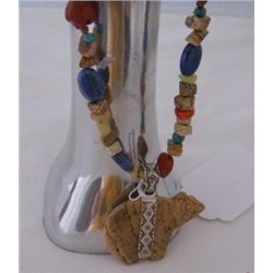 Sterling Silver Zuni Inlaid Necklace with bird made of jet, spiny oyster, mother of pearl and turquoise. The pendant portion measures approximately 2
