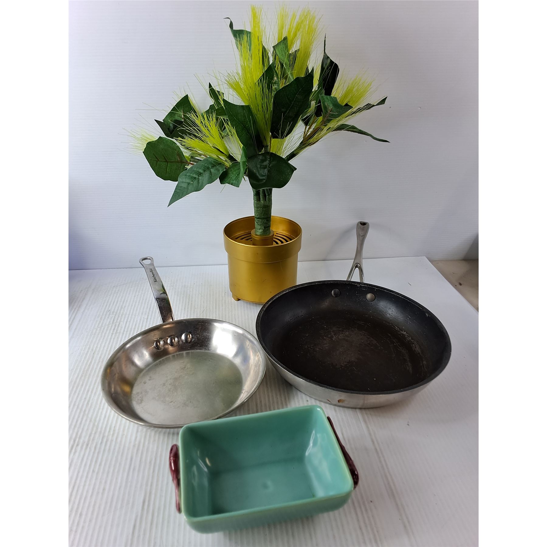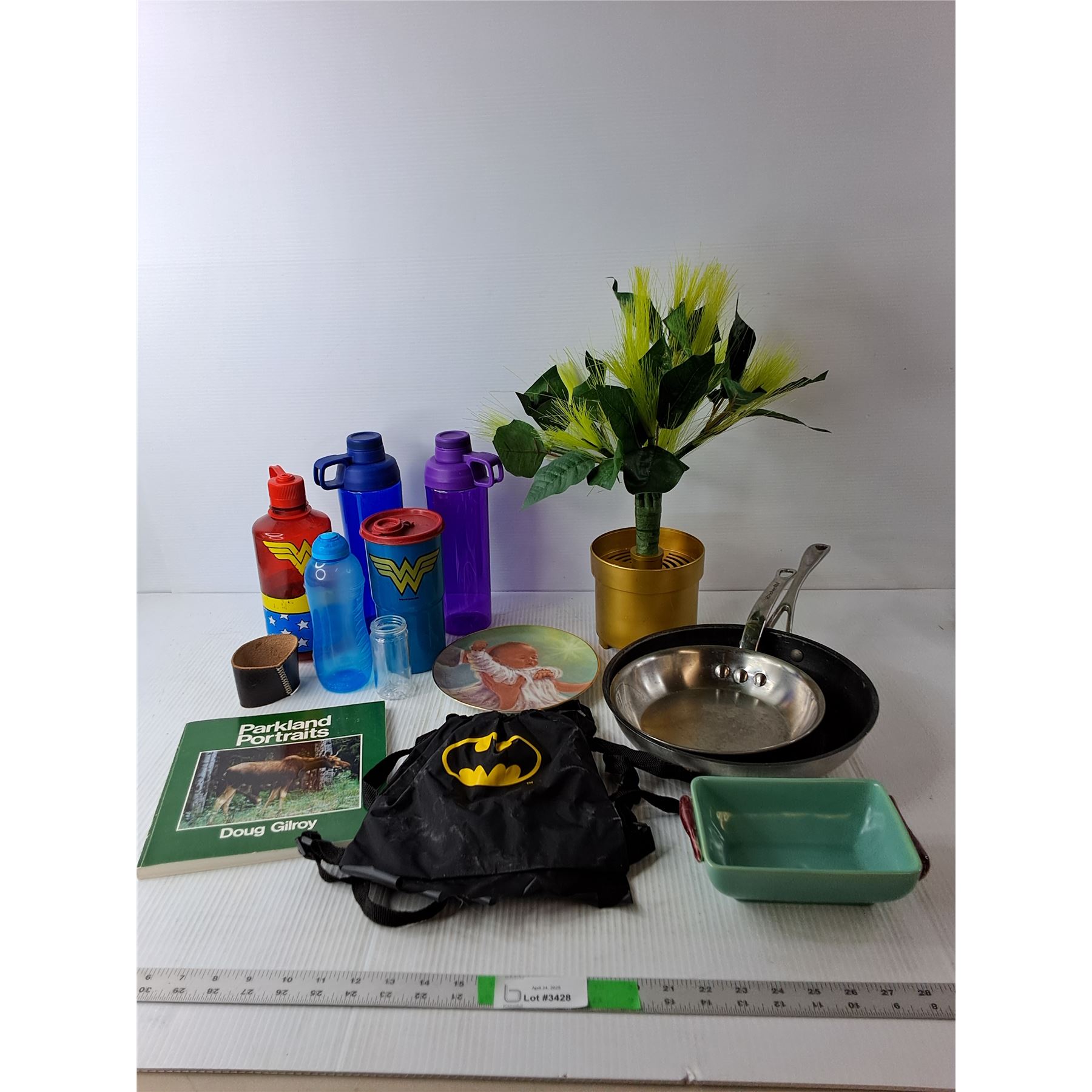 Artificial Plant Light- As Is, (5) Water Bottles, (2) Frying Pans,Misc.