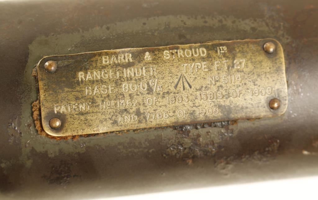 Barr & Shroud Range Finder Artillery No2 with 1914 on plaque. Metal construction shows age and use with some dents and such.