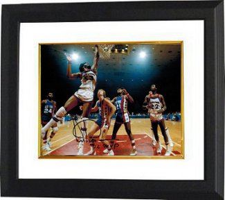 Artis Gilmore played in the ABA and the NBA. Artis was inducted into the Naismith Memorial Basketball Hall of Fame on August 12, 2011. Over his five-year ABA career, Gilmore led the ABA four times in rebounding average, and twice in both field goal percentage and blocks per game. He was named to the All-ABA First team five straight seasons, and the All-Defense team four times. He played in the ABA All-Star Game all five years he was in the league, earning the 1974 game's MVP. The capstone of his time in the ABA was leading the 1974-75 Kentucky Colonels to the 1975 ABA championship and being named the ABA Playoffs Most Valuable Player. Nicknamed "The A-Train", the 7' 2" Gilmore once played in 670 consecutive games. Artis Gilmore has hand autographed this Kentucky Colonels 8x10 Photo with '72 MVP inscription. Schwartz Sports Hologram and Certificate of Authenticity. Custom White Mat and Premium Black Color Framed as shown.