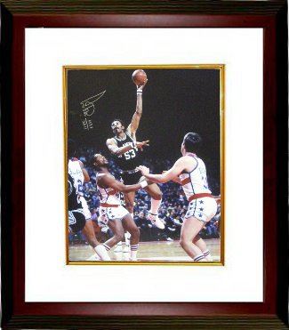 Artis Gilmore played in the ABA and the NBA. Artis was inducted into the Naismith Memorial Basketball Hall of Fame on August 12, 2011. Gilmore followed 5 All-Star seasons with the Kentucky Colonels of the ABA by becoming the 1st overall pick of the 1976 NBA dispersal draft by the Chicago Bulls. After four All-Star selections in five solid basketball seasons in Chicago, Gilmore was traded to the San Antonio Spurs in 1983. Twice again he was an All-Star in San Antonio. In Gilmore's complete pro basketball career, he was an eleven-time All-Star, the ABA Rookie of the Year, and an ABA MVP, and he remains the NBA career leader for field goal percentage. Nicknamed "The A-Train", the 7' 2" Gilmore once played in 670 consecutive games. Artis Gilmore has hand autographed this San Antonio Spurs 16x20 Photo with HOF 2011 inscription. Leaf Authentics Hologram and Certificate of Authenticity from Athlon Sports. Custom White Mat and Premium Mahogany Frame as shown.
