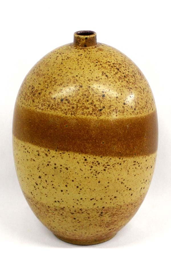 Artisan Crafted Stoneware Pottery Jar, signed on the bottom and measures 9'' x 5.5''