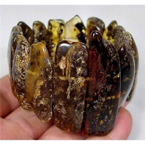 <table width="100%" border="0" cellspacing="0" cellpadding="4"><tr><td><em> </em></td></tr><tr> <td width="100%"> Please Note I only ship to Canada or the continental USA and paypal's payment MUST BE A CONFIRMED ADDRESS <p>Welcome to our Baltic amber showcase. If you prefer unique original items at wonderful prices we sincerely invite you to browse our large inventory and we guarantee our customer service is second to none. Spectacular combinations of natural Baltic amber is sure to please with an exceptional gram weight of 42. Fashioned on strong double stretch cords this bracelet offers the ultimate in comfort and durability and is suitable for a 6" to 7" wrist. The largest plate has measurements of 53x18mm and for those not familiar with metric 25mm=1".