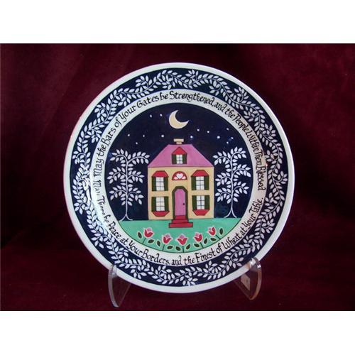Artisan Carla Grace creates inspirational calligraphy verses on earthenware ceramics which are both highly functional and decorative in nature. This plate is hand-painted and contains a freehand drawing using clay-based pigments. This artisan made and artisan signed "Night House Plate" is wonderfully painted with vibrant colors giving a terrific artistry. This piece of artwork will be a dynamic source of conversation whether it's adorning your home's decoration or serving your guest. For additional information please contact Mindiby e-mail at