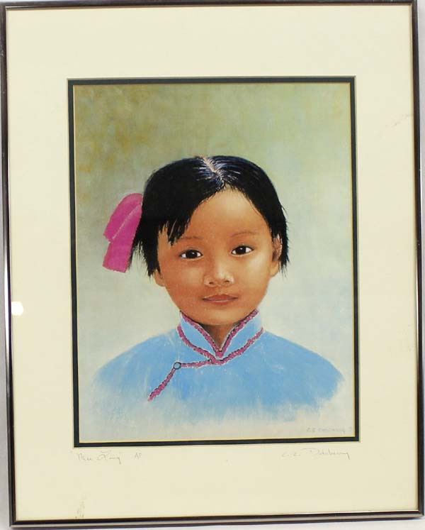 Artist Proof ''Mei Ling'' by C. E. ''Buzz'' Dolsberry, framed, matted, and under glass, visual measures 13.5'' x 10.5'' and a total measurement of 16'' x 20'', hand signed by the artist, FYI: Dolsberry is an award winning artist from Arizona. His art work was featured in Arizona Life Style in 1998, and in 1999 his painting, End of the Line, was chosen for the cover of the Oro Valley Arts and Music Festival official program. Buzz's paintings hang in collections throughout the United States and abroad.''