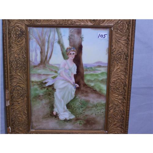 Artist Signed KPM Limoge Plaque Signed F.H. Haynes 1910 Frame Has Minor Chipping Marked On Back T &V Limoges France 10 1/2 x 13 Overall