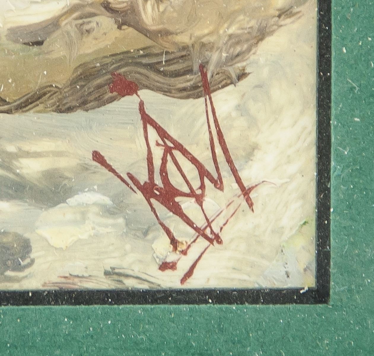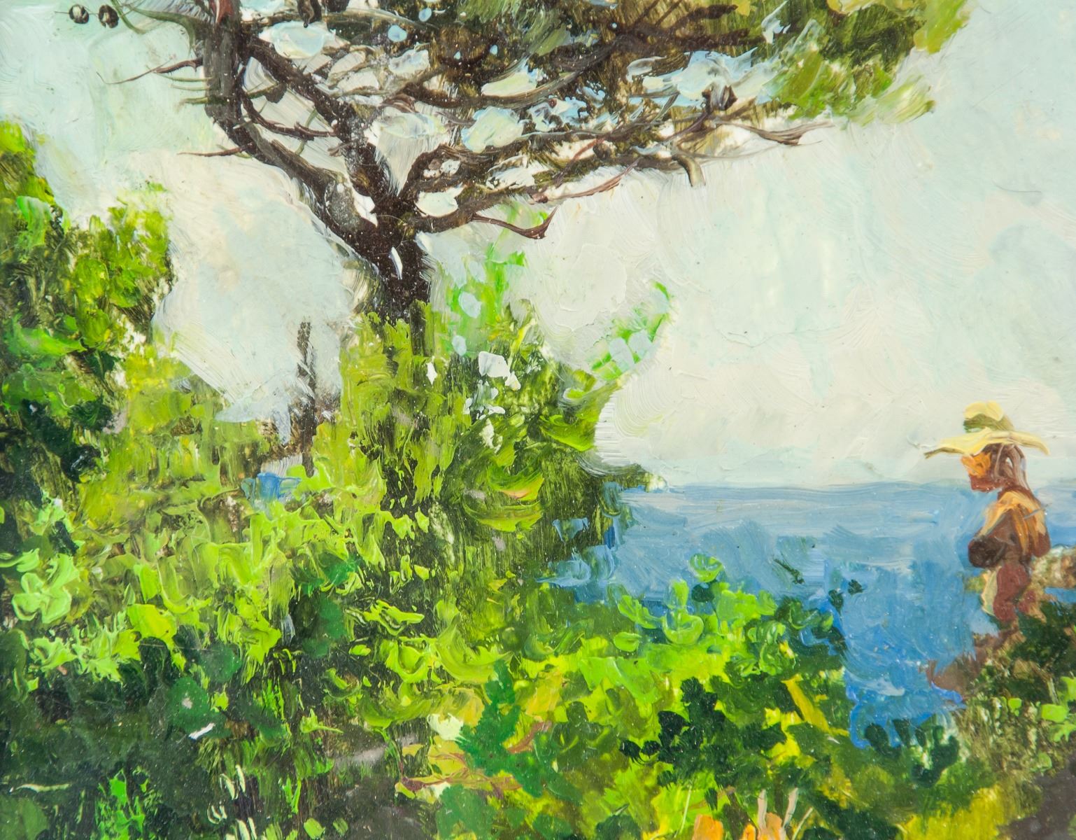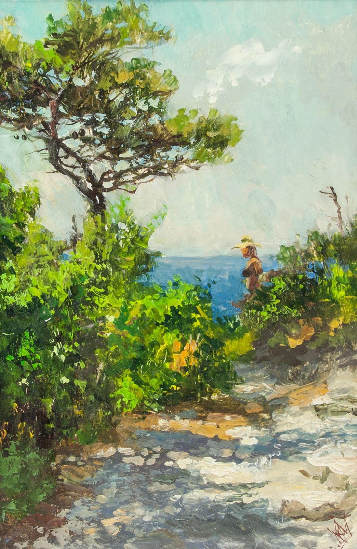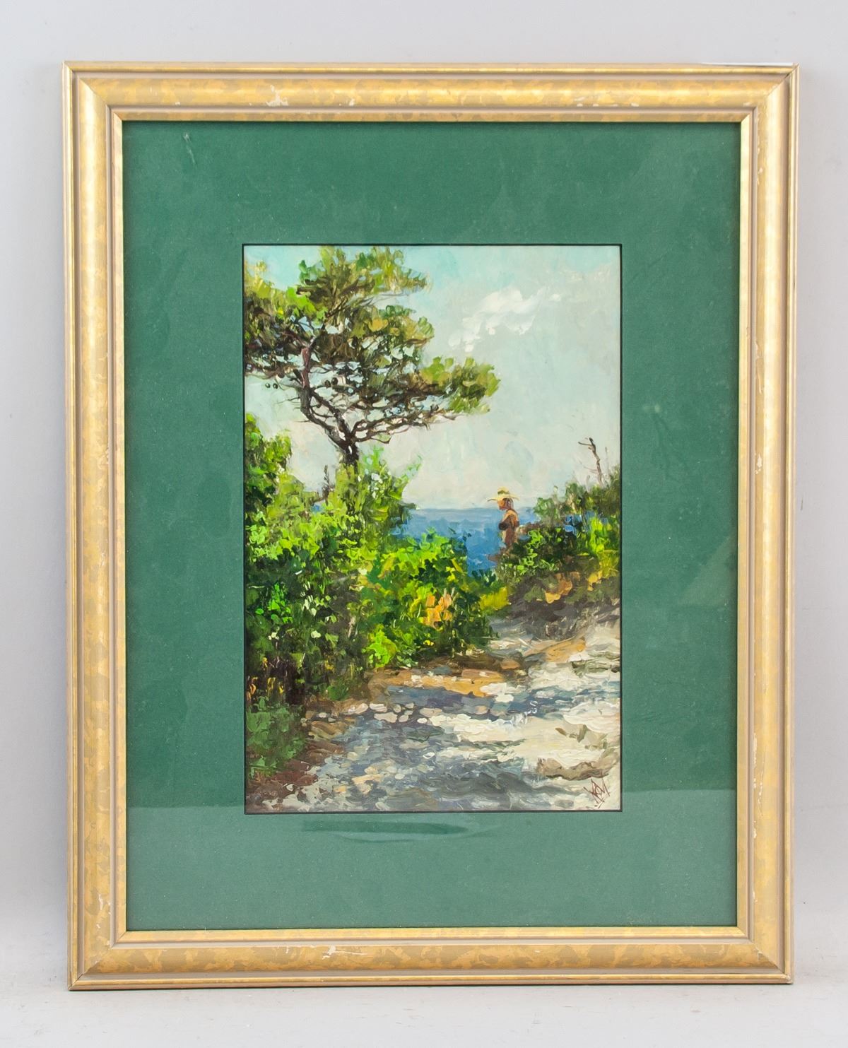 Oil on paper, framed. Featuring a landscape scene. Signed "KPM" by the artist on the lower right corner. 28 x 18 cm (11 x 7 inches), framed: 36 x 46 cm (14 x 18 inches)