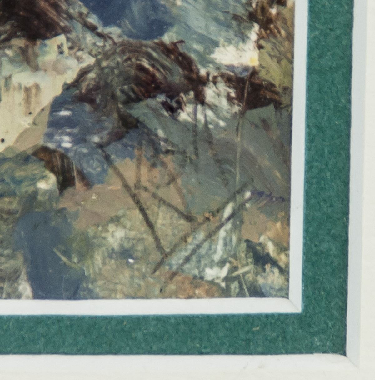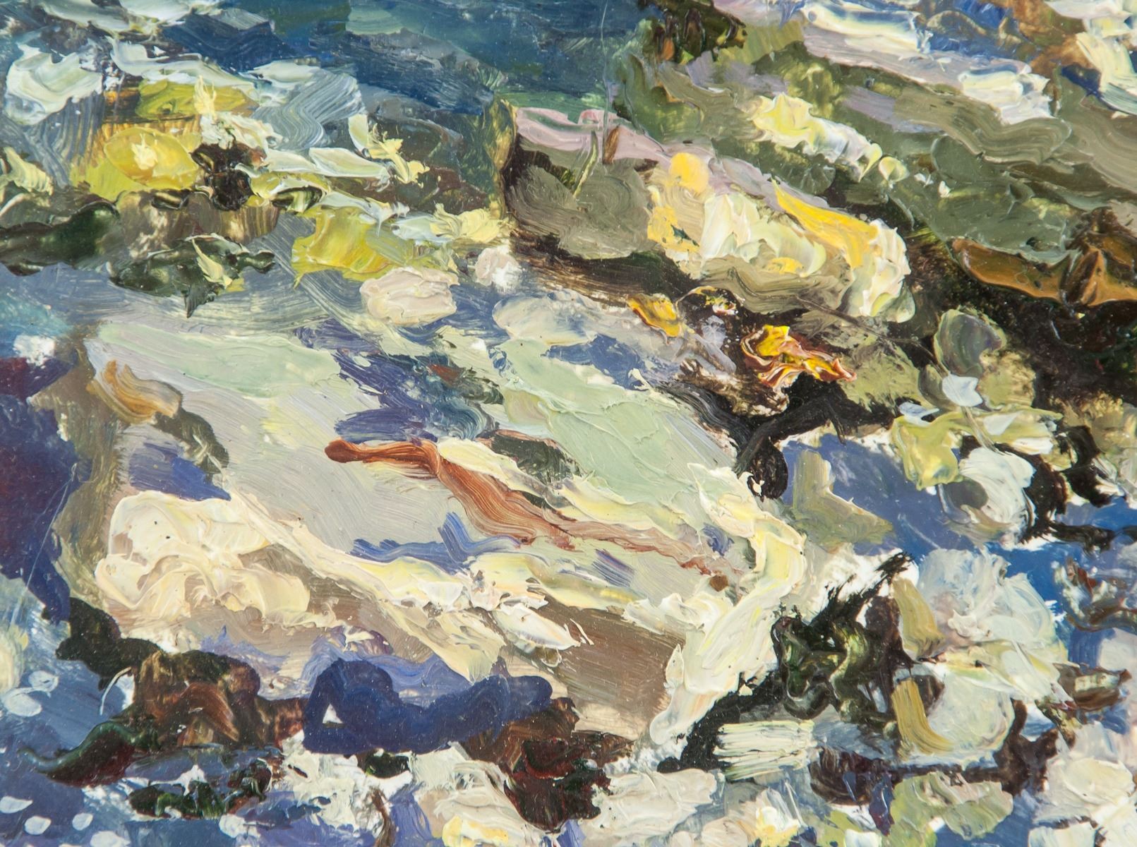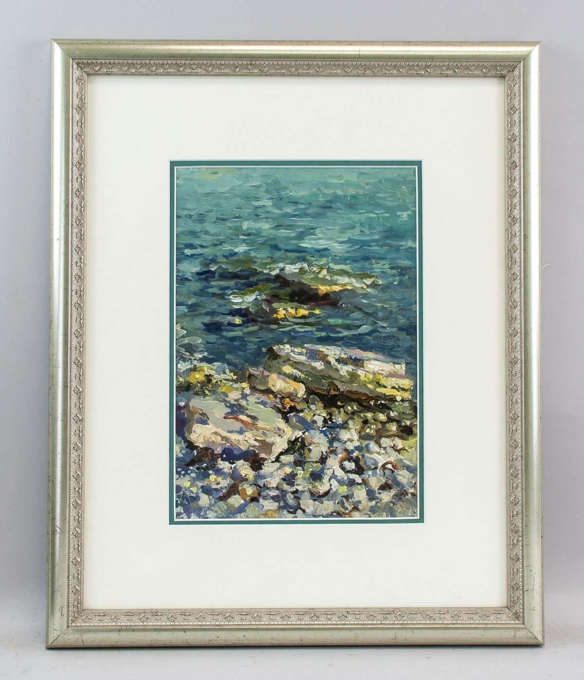 Oil on paper, framed. Featuring a seaside landscape scene. Signed "KPM" by the artist on the lower right corner. 29 x 20 cm (11.5 x 7.8 inches) framed: 49 x 40 cm (19.3 x 15.7 inches)