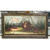 oil on canvas, framed. Featuring a still life scene of grapes and teapot. Signed by the artist on the lower right corner. 57 x 118 cm (22.4 x 46.4 inches).
