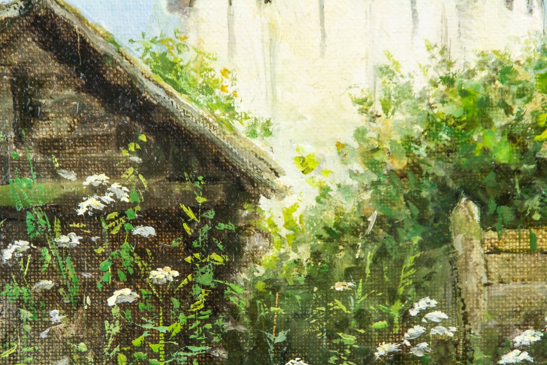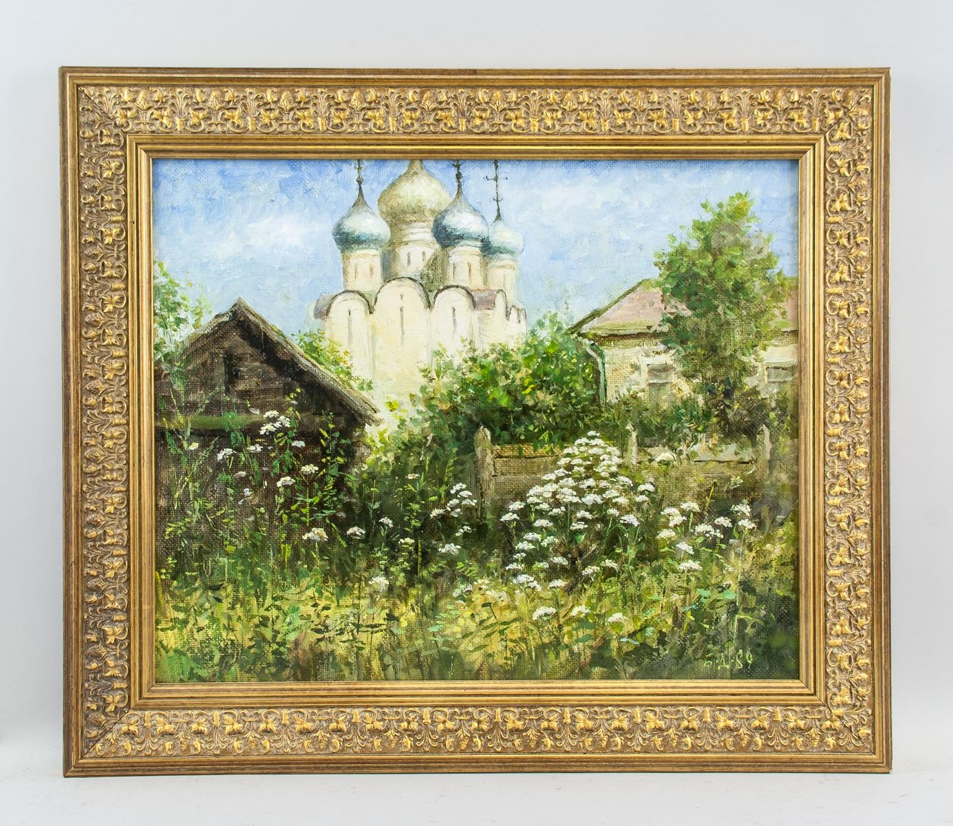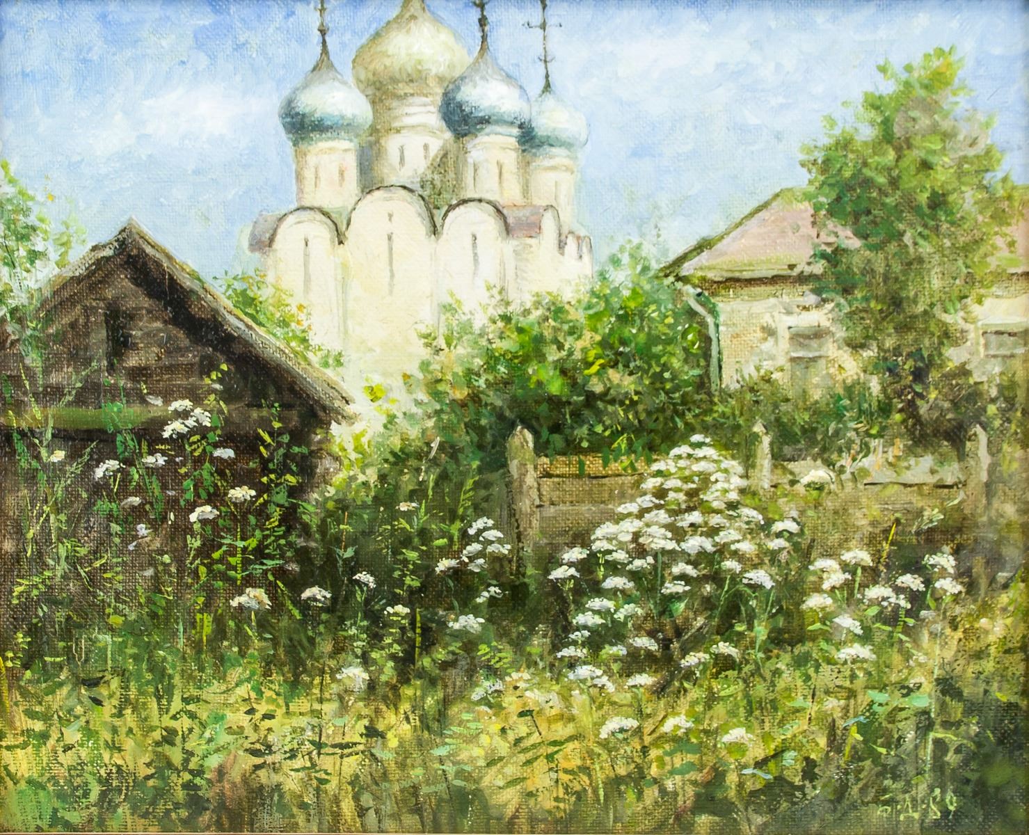 Oil on canvas, framed. Featuring the Russian Orthodox church landscape scene. Signed by the artist in on the lower right corner, inscribed May 1989 and stamped I2. on verso. 44 x 36 cm (17 x 14 inches), framed: 57 x 49 cm (22.4 x 19.3 inches)