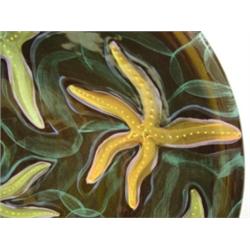 Artist signed Starfish decorator plate on metal stand. Very large - 20-1/2" wide. Nicely painted on custom stand. Signed Gael? '94 on back. Photos do not do justice to this beautiful piece. Weighs 15 pounds.