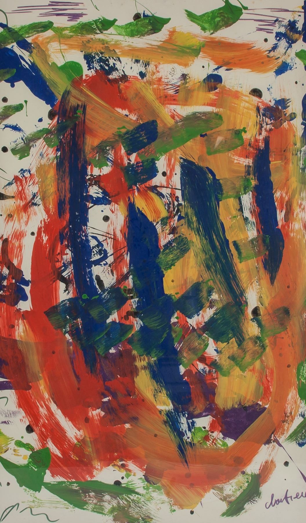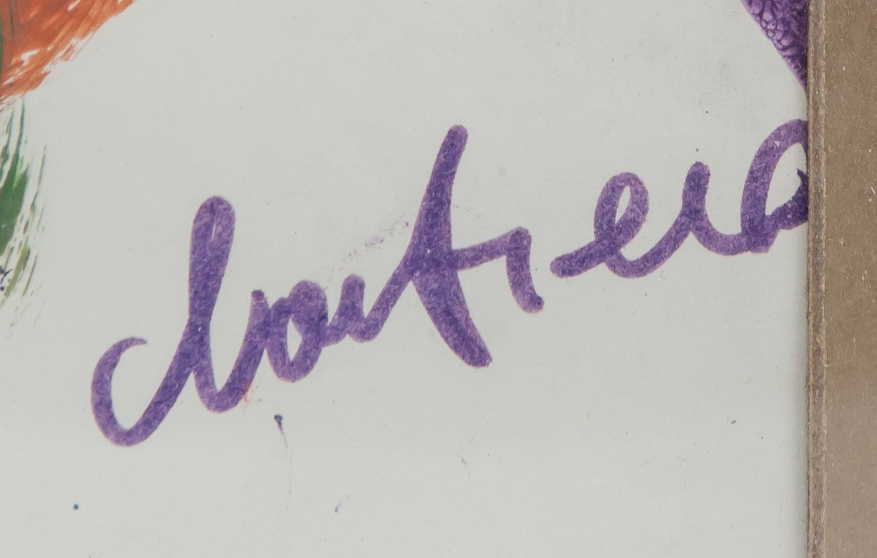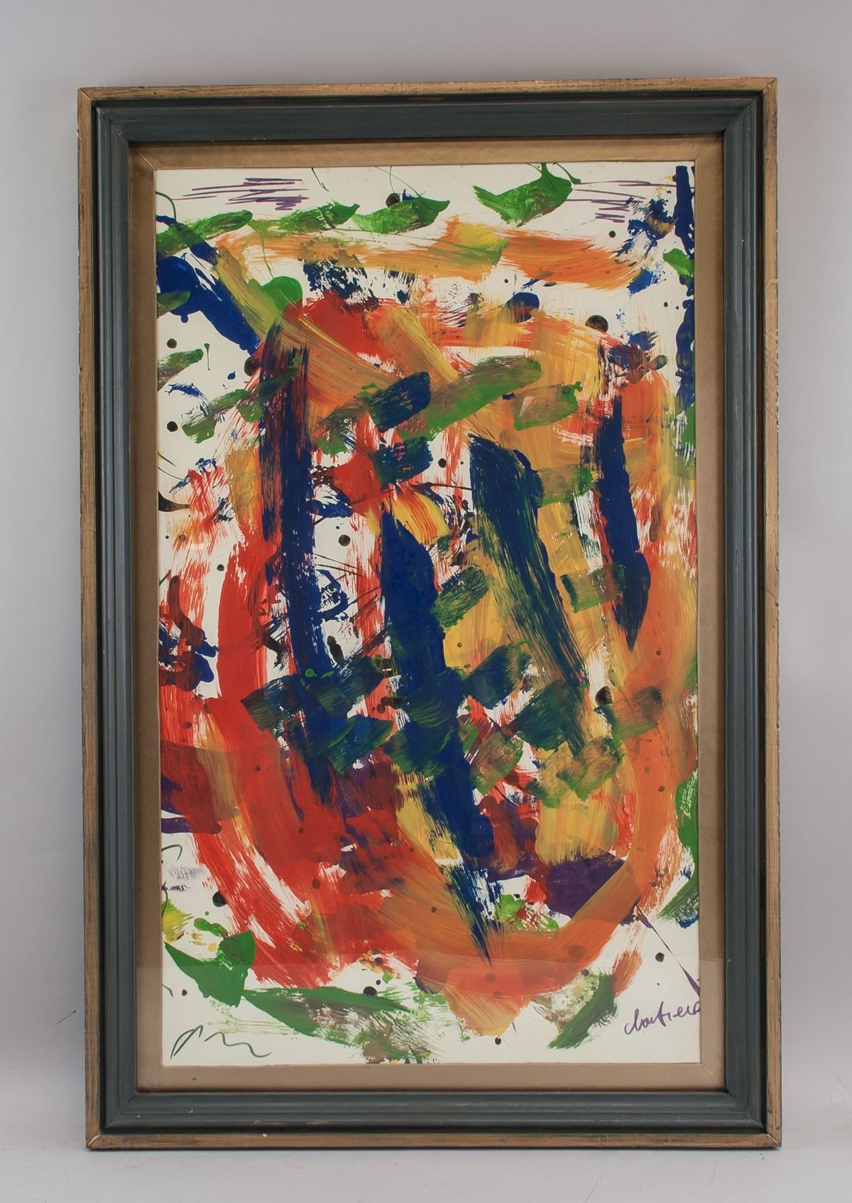 Acrylic on paper, framed. Featuring an abstract composition artwork. Signed by the artist on the lower right corner. 71 x 41 cm (28 x 16 inches)