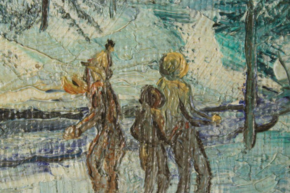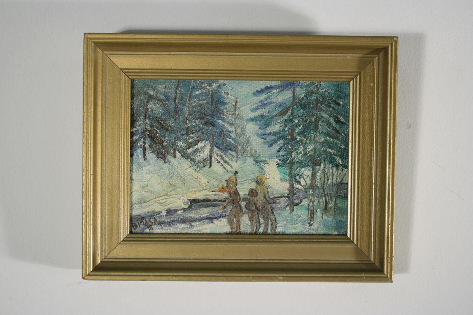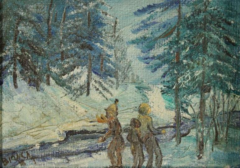 Artist Unknown (19th/20th Century) Snow Scene with Children, Oil on board,