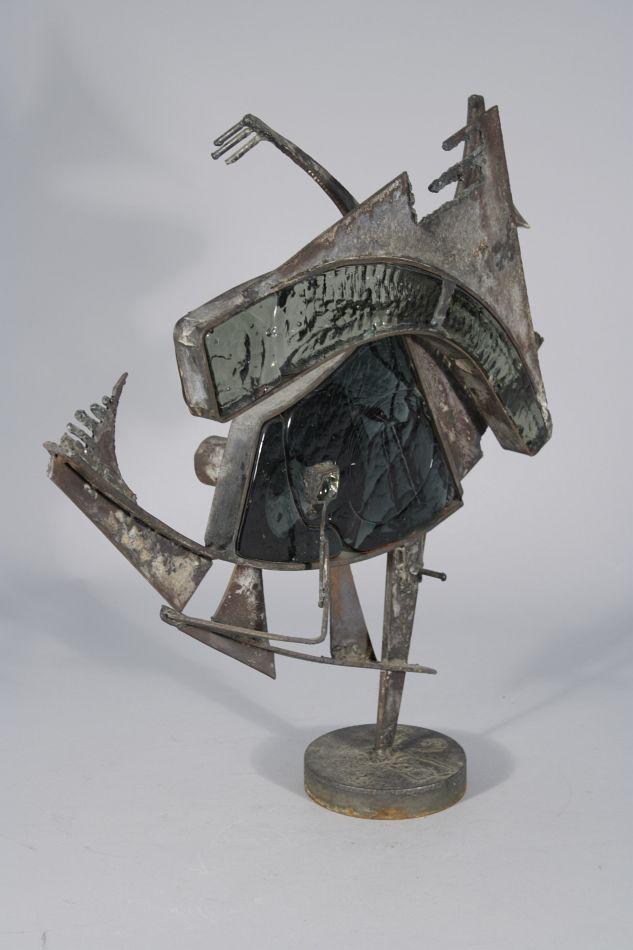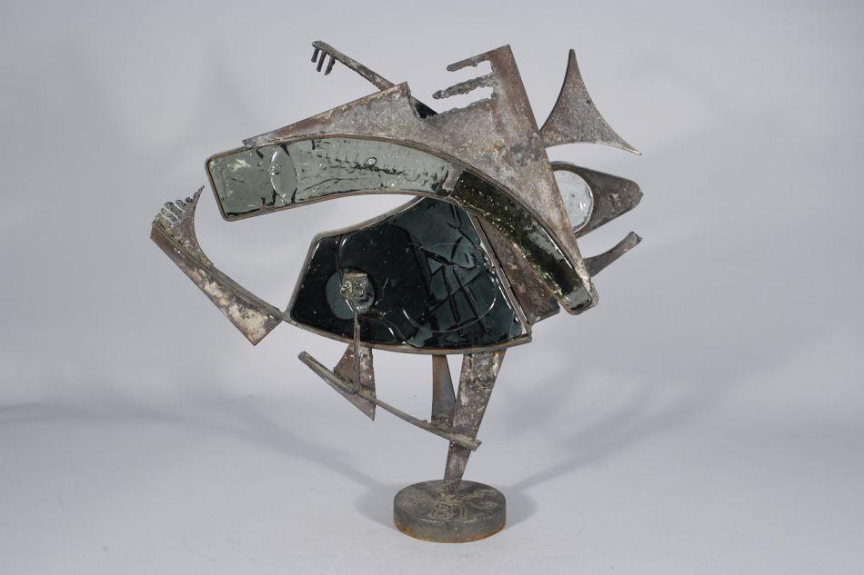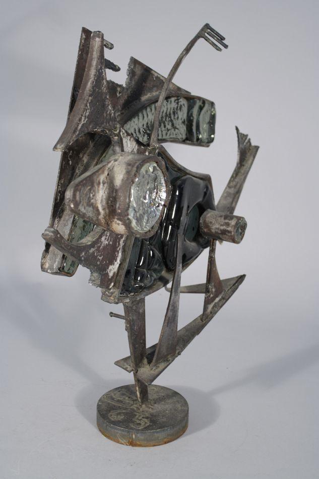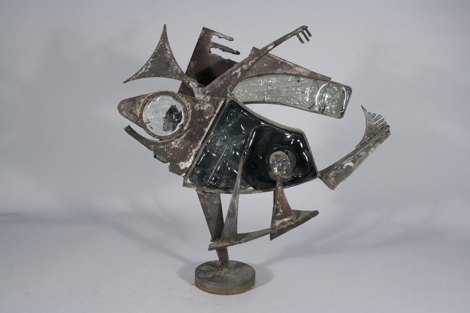 Artist Unknown (20th Century) A Brutalist Welded Metal and Glass Sculpture of a Fish, Dated '65 with the initials B.J.