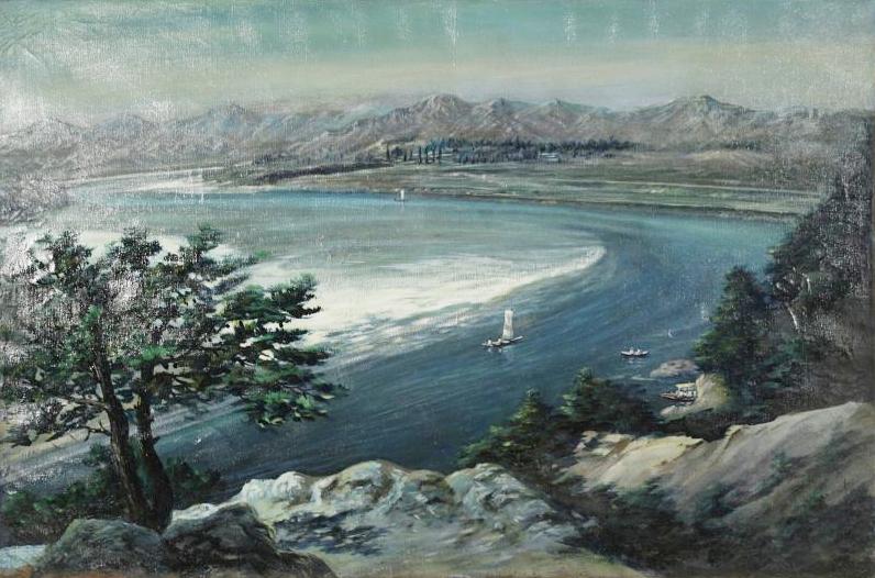Artist Unknown (20th Century) Asian Landscape with River, Oil on canvas,