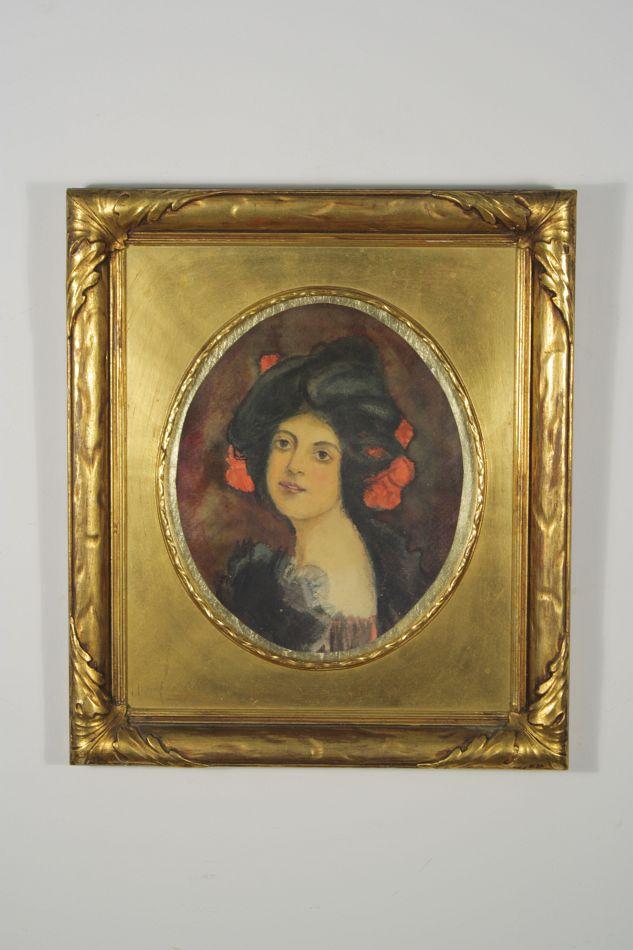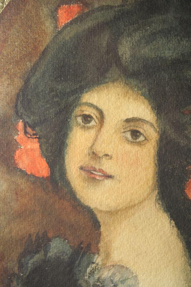 Artist Unknown (20th Century) Portrait of a Young Lady with Roses, Watercolor on paper,
