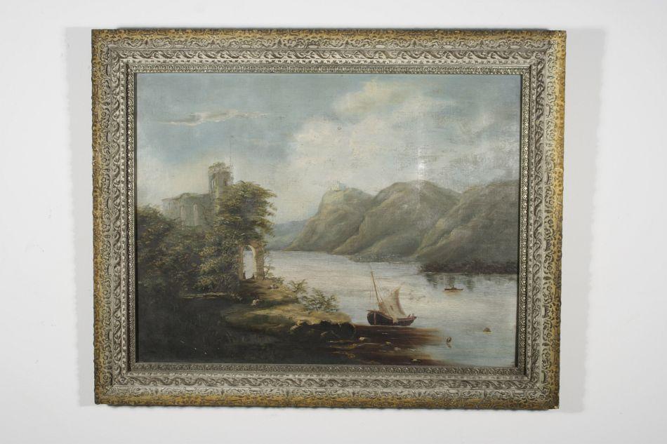 Artist Unknown, Mountain Scene with Lake, Oil on canvas,