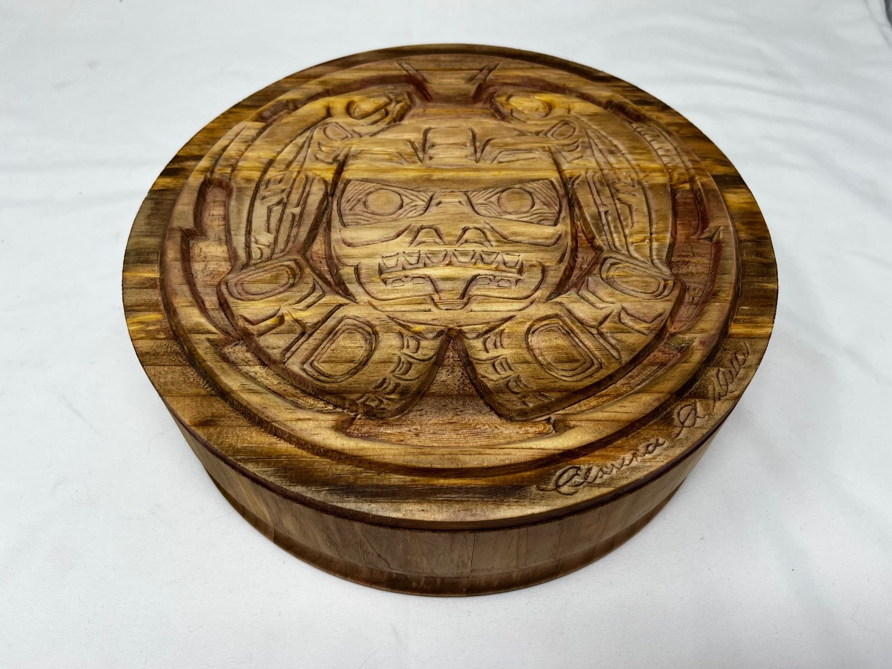 Indiginous Haida art design with salmon and bear motif signed clarence a.