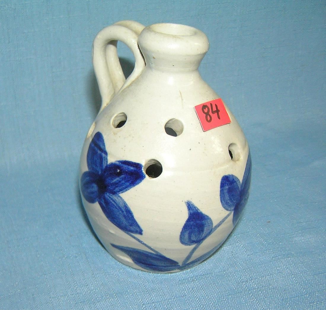 Artist signed cobalt blue mini stoneware jug signed Maloney Pottery est. value $25.00-$30.00
